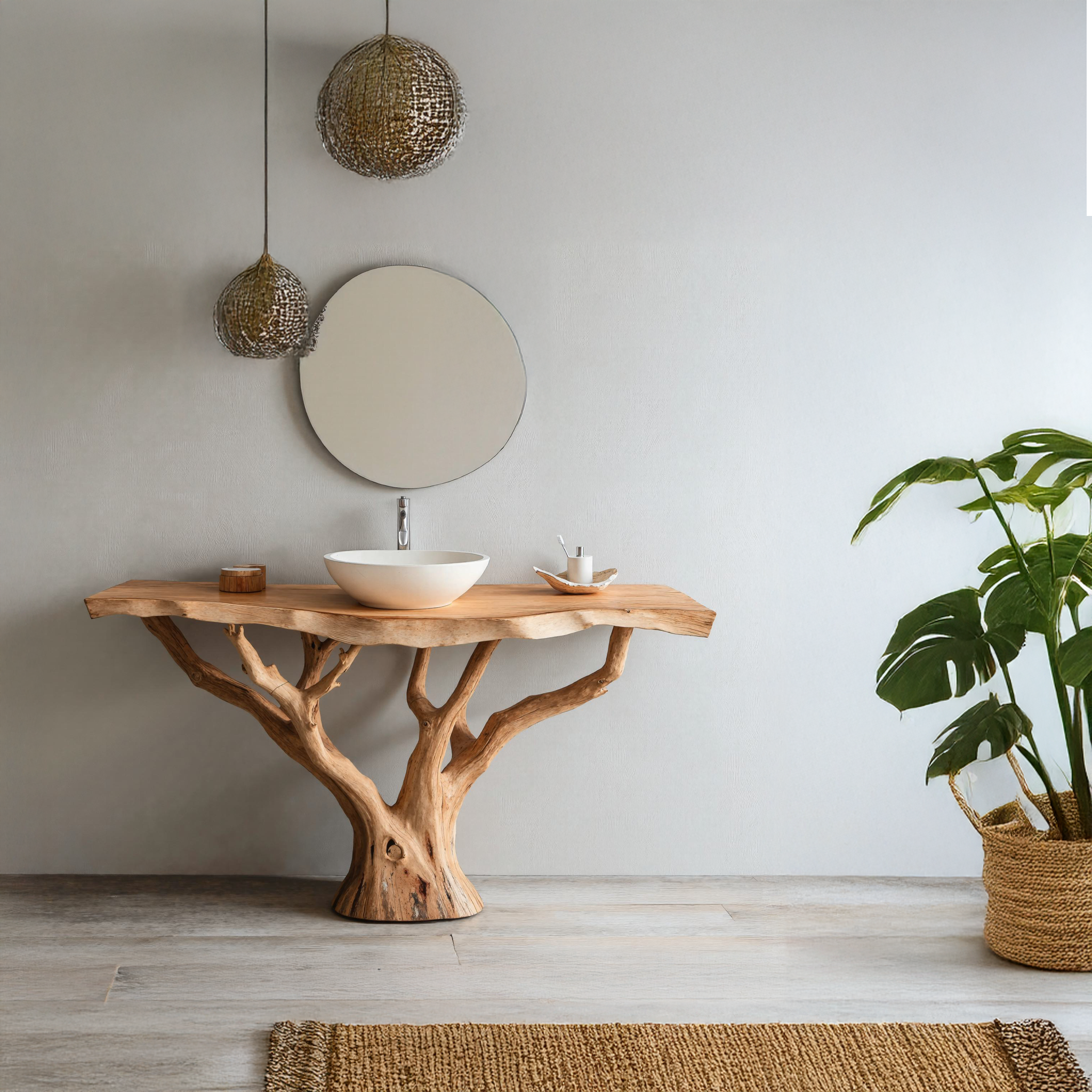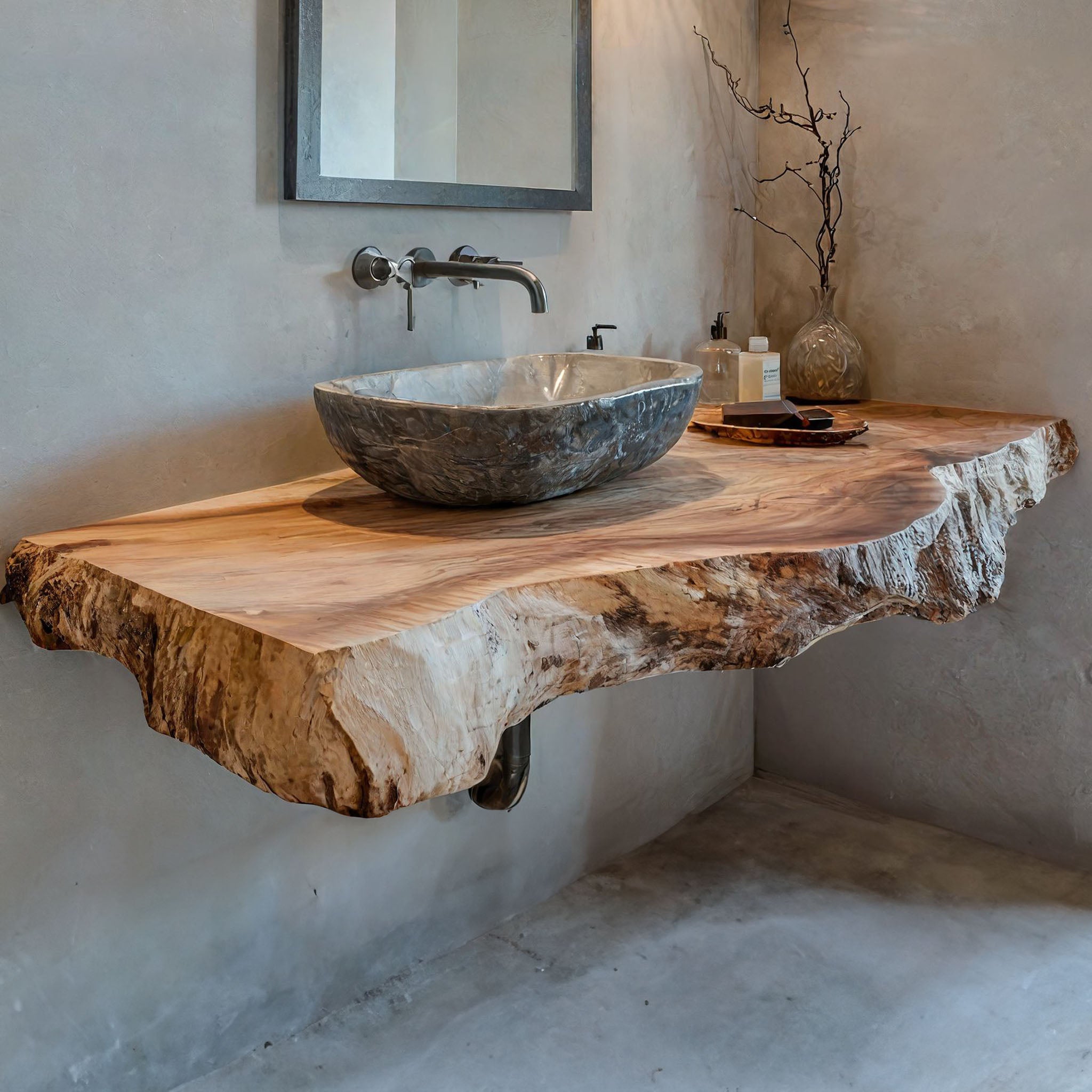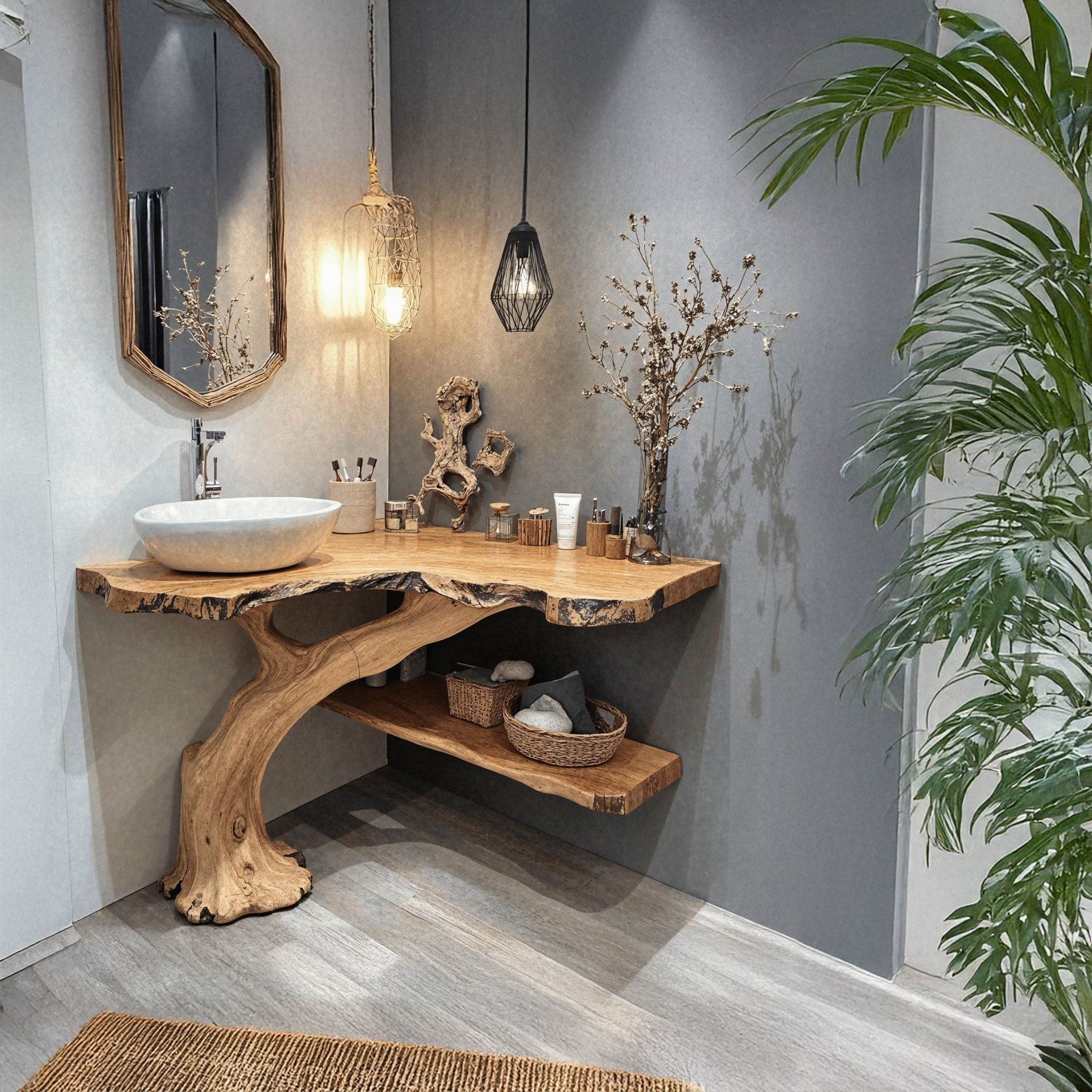 Tree Branches Rustic Bathroom Vanity With Sink Floating Shelves SINLTBB002
