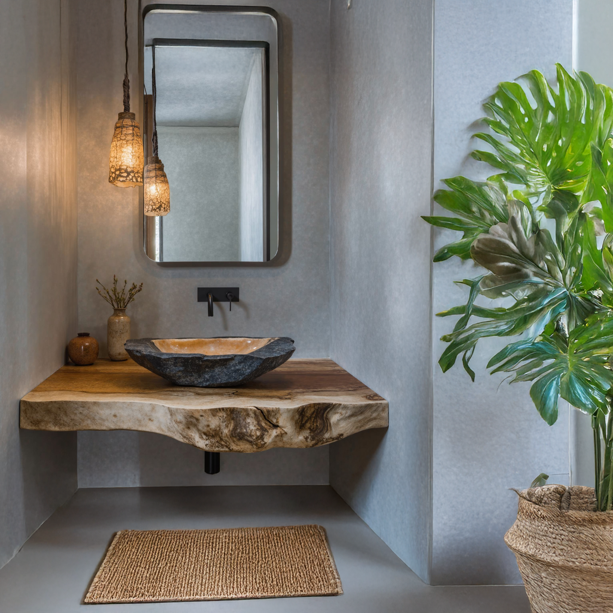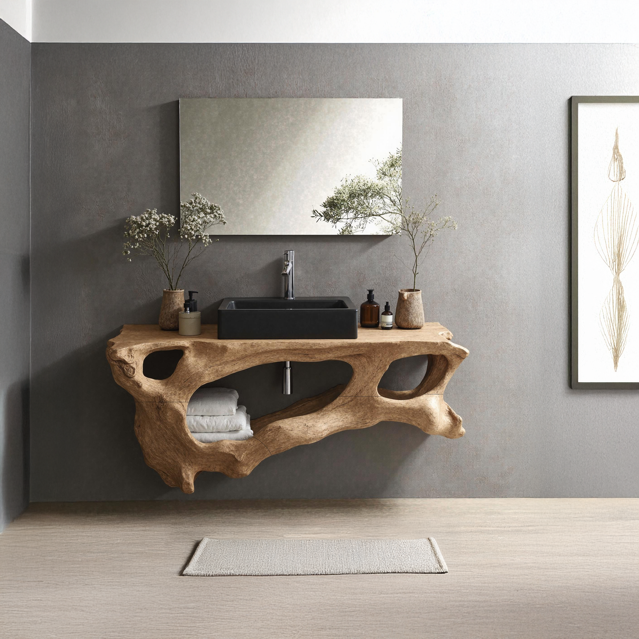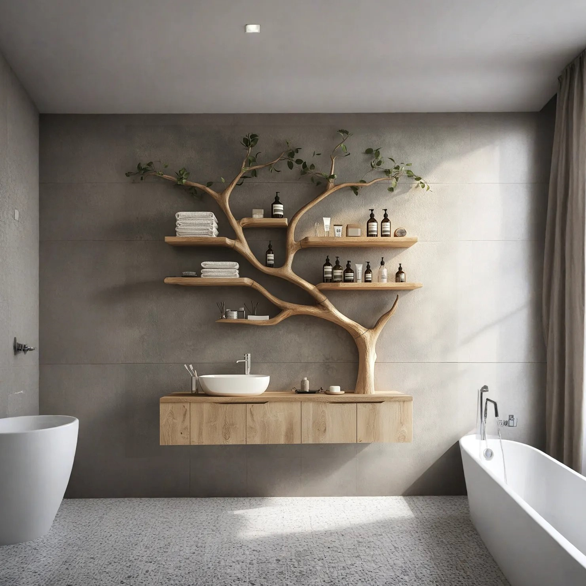Tree Branches Rustic Bathroom Vanity With Sink Floating Shelves SINLTBB002