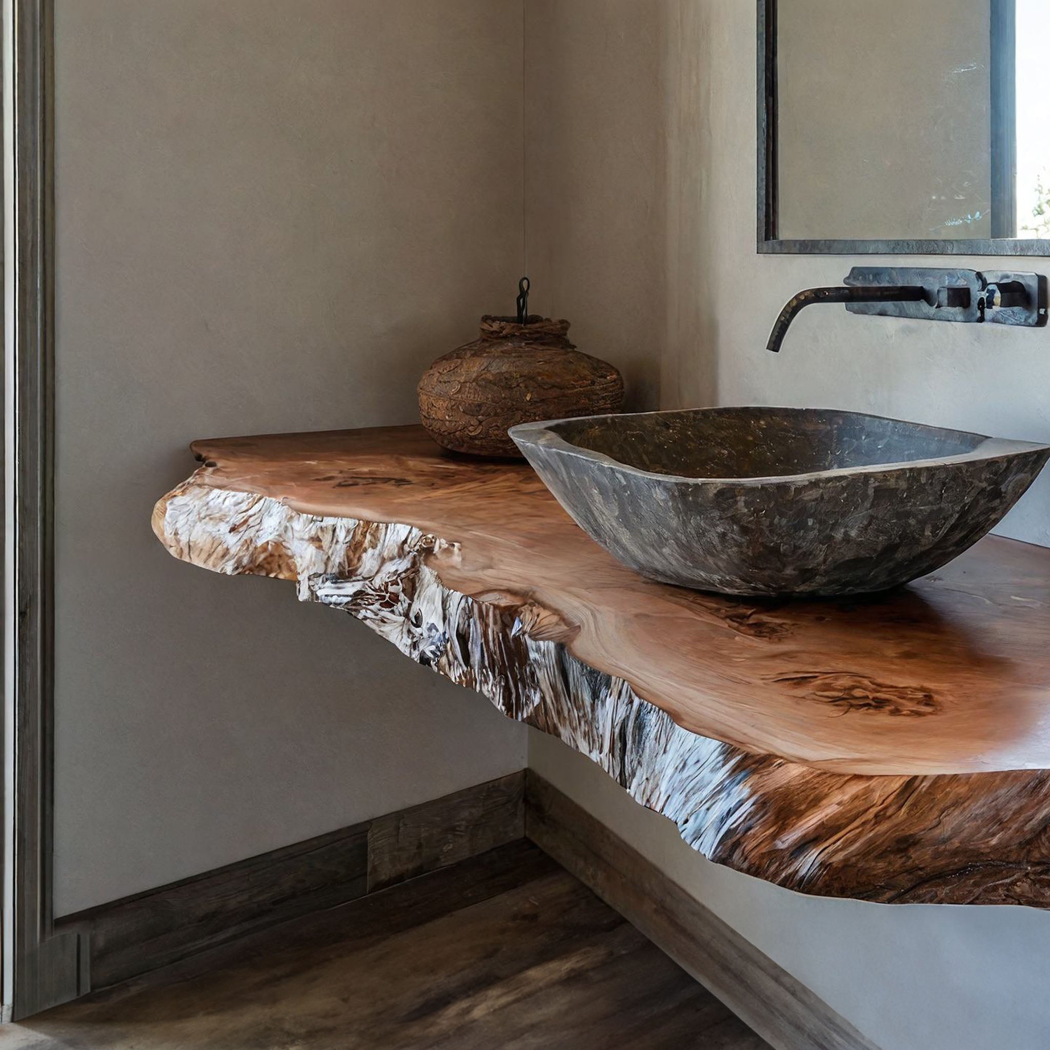 Handcrafted Live Edge Bathroom Vanity Shelf Rustic SINLBRV024 $225.00 – $800.00Price range: $225.00 through $800.00