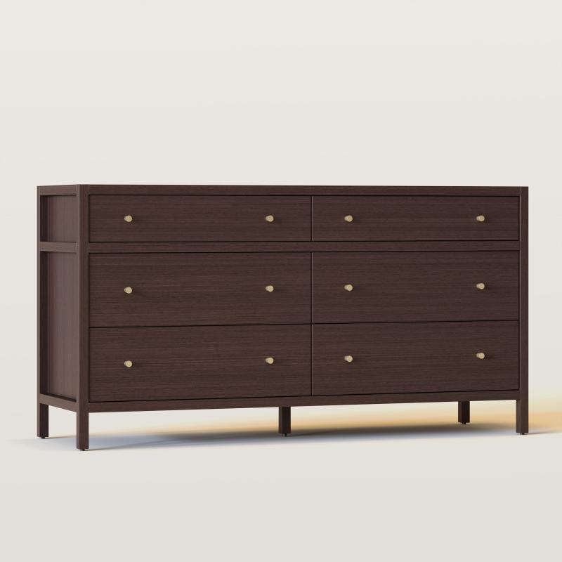 64in Chest of Drawers Wood 6 Drawer Dresser