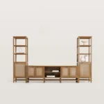 The desktop is spacious and suitable for placing televisions, speakers, decorations, or home photo frames. It has strong load-bearing capacity and is stable.