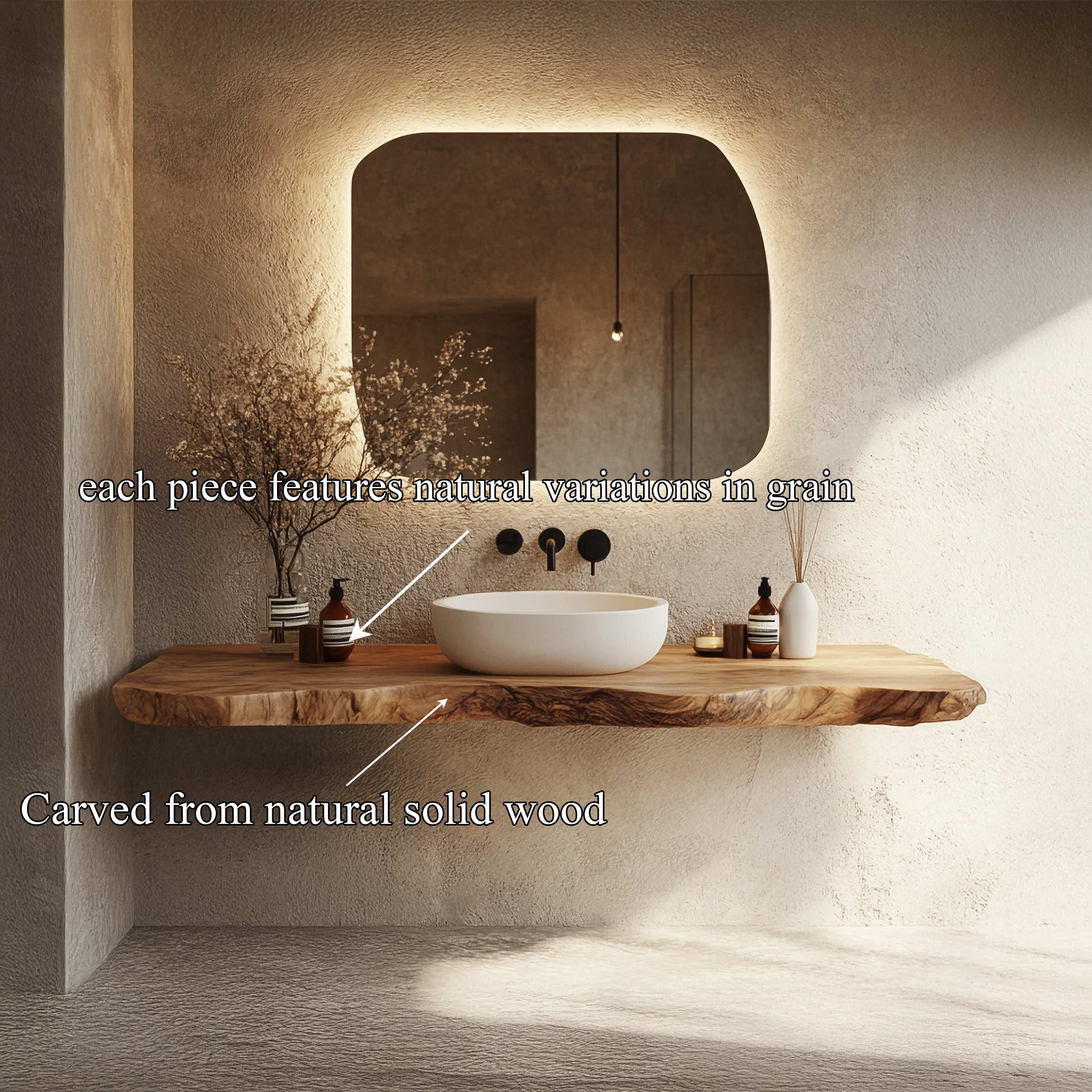Each vanity showcases natural grain patterns, knots, and tonal variations. These characteristics are intentionally preserved, ensuring every piece is unique while maintaining a consistent overall design language.