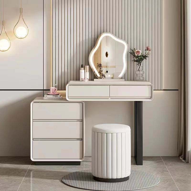 The vanity table has two large drawers, offering ample space for your cosmetics and daily essentials. The integrated storage cabinet, positioned at the side, includes three spacious drawers for additional storage, making it easy to keep your items organized and accessible.?