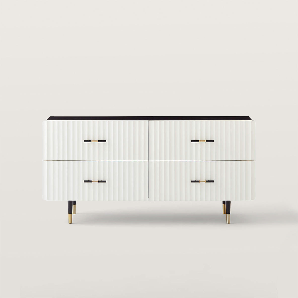 Convex Textured Dresser with 4 Drawers And Brass Colored Handles