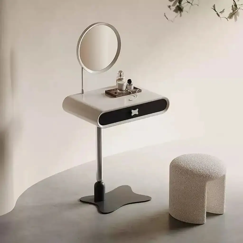 The matching dressing stool adopts a soft cushion design, providing a comfortable sitting experience and a simple and modern appearance, which can perfectly match the dressing table. The legs of the stool are stable, ensuring safety and stability during use.