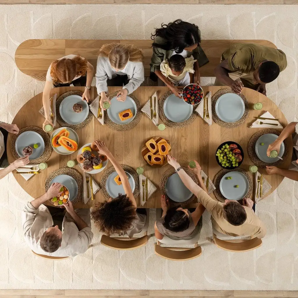 The dining table adopts a clever expandable design, which can easily adjust the length according to the number of diners. The desktop extension has a hidden design, which is easy to operate and can provide a larger dining space after extension, suitable for family gatherings, banquets, or holiday gatherings. The extension mechanism is smooth and stable, ensuring the stability of the desktop. There is no noise during the extension process, ensuring a smooth user experience.