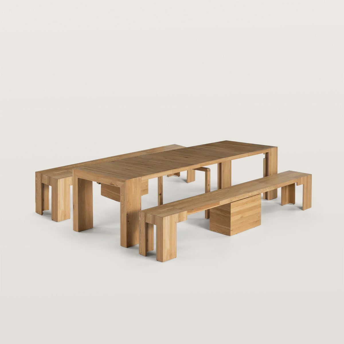 Family dining: This extended dining table and bench set is perfect for daily family dining and can be easily adjusted according to changes in the number of people, adapting to the needs of different family members.