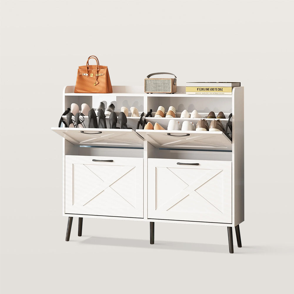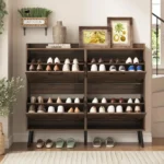 This farmhouse freestanding shoe storage cabinet with flip drawers can store up to 32-40 pairs, adopts the design of space-saving flip drawers, which is easy to open and close. Compared with ordinary shoe racks, this narrow shoe cabinet can be placed in a narrow space, keeping your shoes away from dust and preventing pets from biting your shoes.
