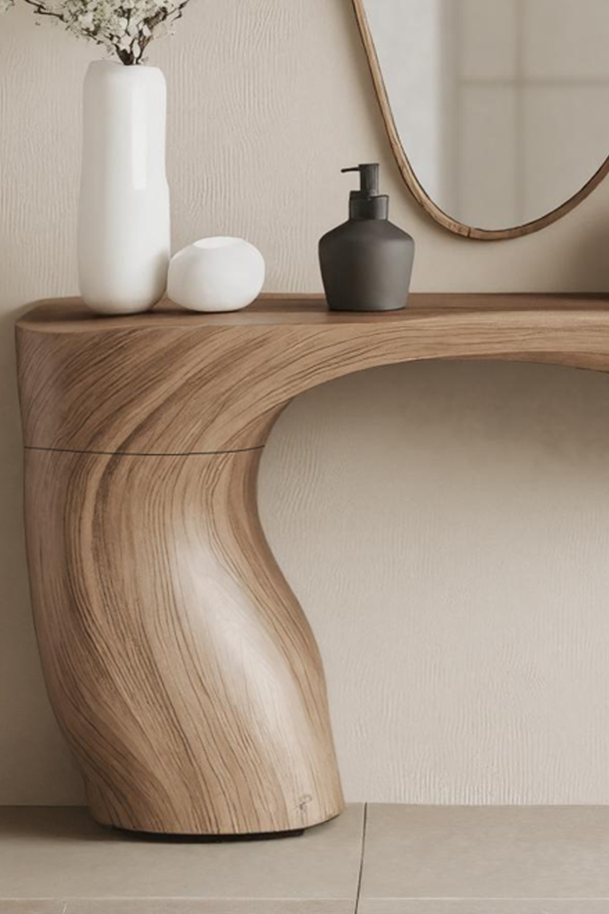 - Natural Solid Wood: Crafted from reclaimed monkey pod wood, known for its rich texture and sustainable origin.