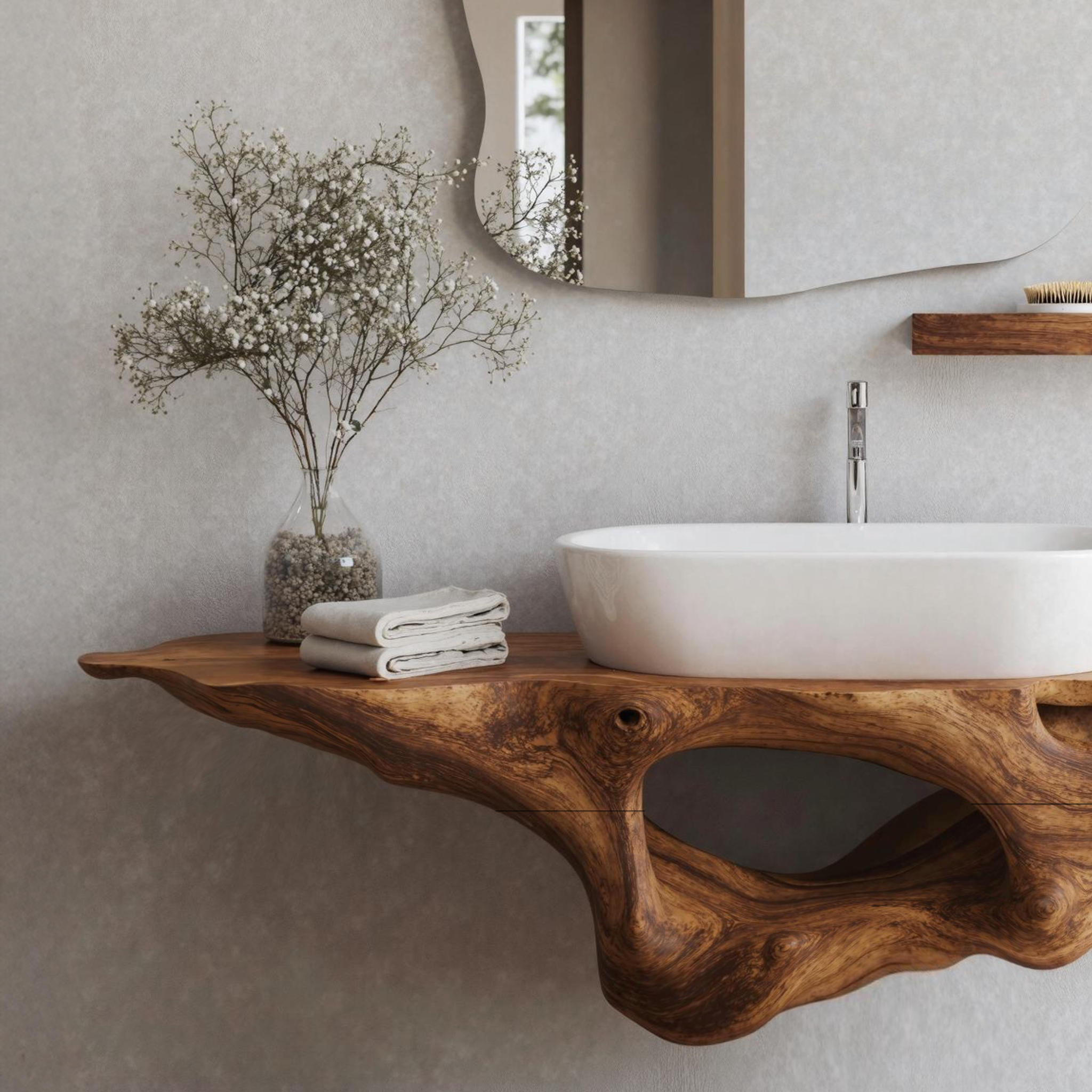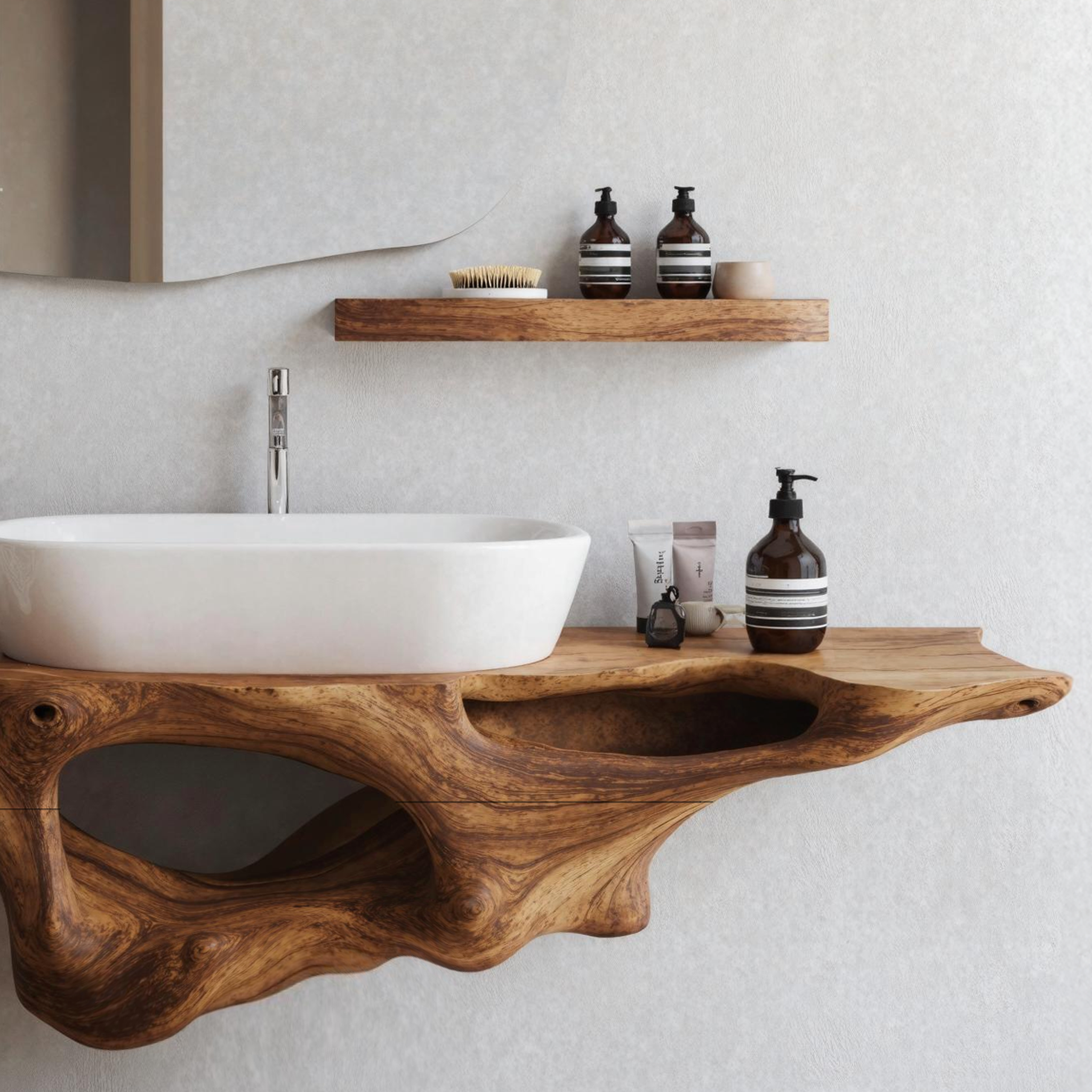 Elevate your bathroom with our Handmade Wooden Vanity, blending rustic charm with modern elegance for style and functionality.