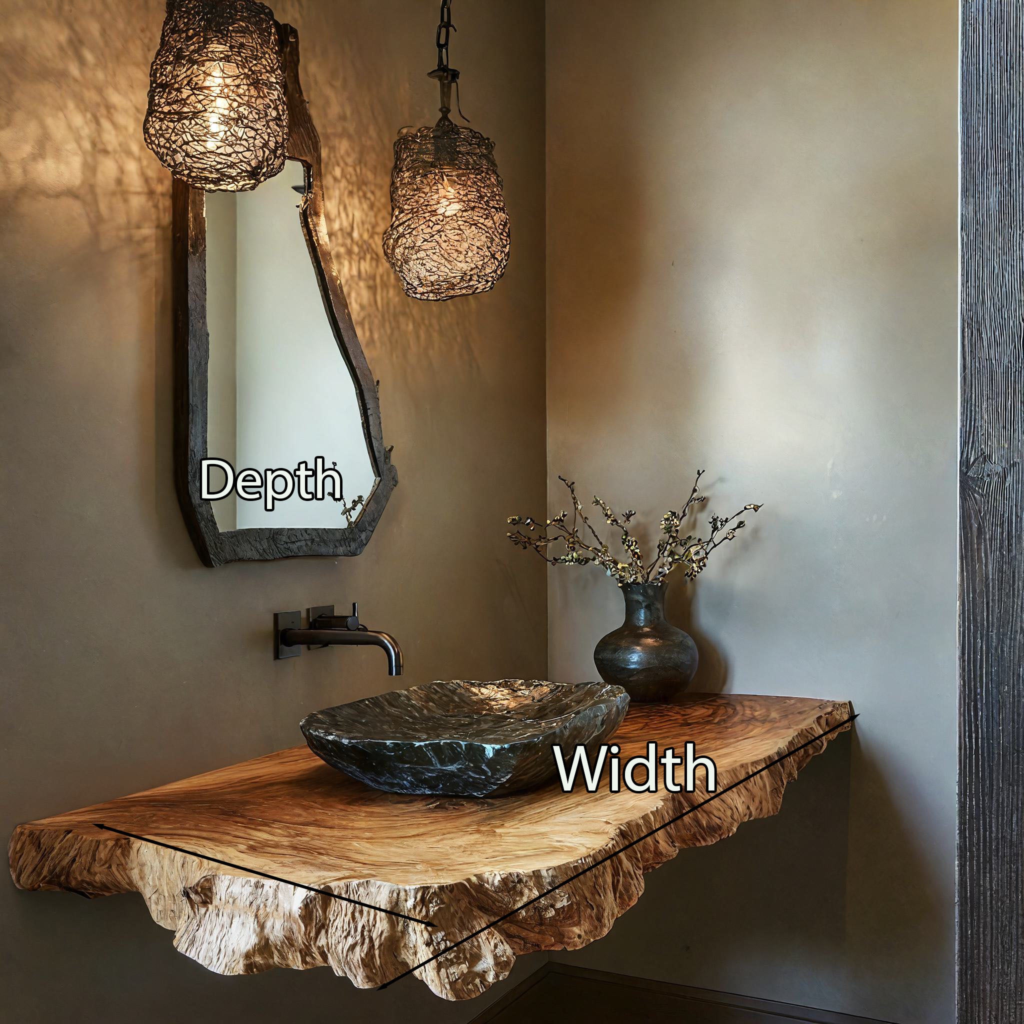 Elevate your bathroom with our Handmade Wooden Vanity, blending rustic charm with modern elegance for style and functionality.