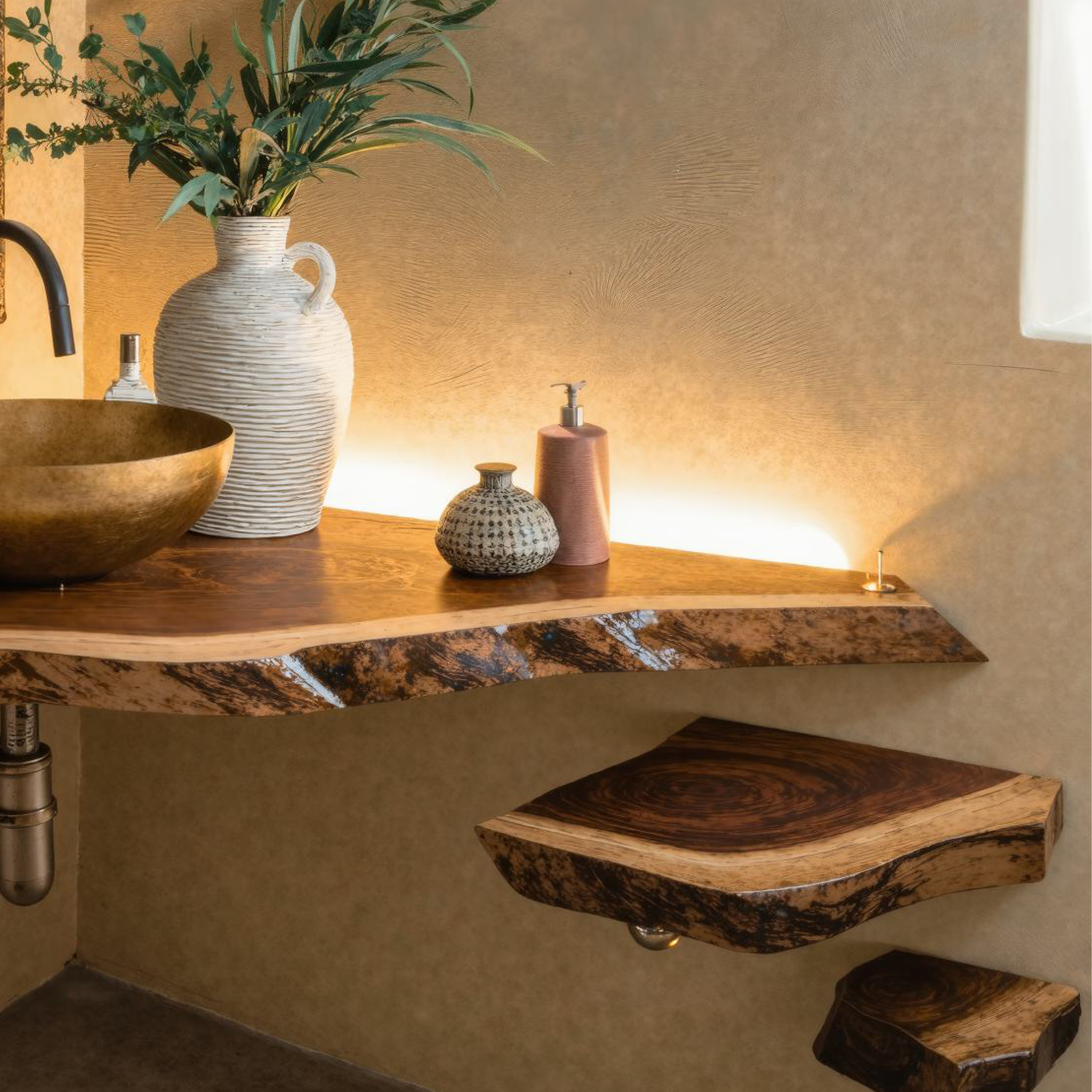 Elevate your bathroom with our Handmade Wooden Vanity, blending rustic charm with modern elegance for style and functionality.