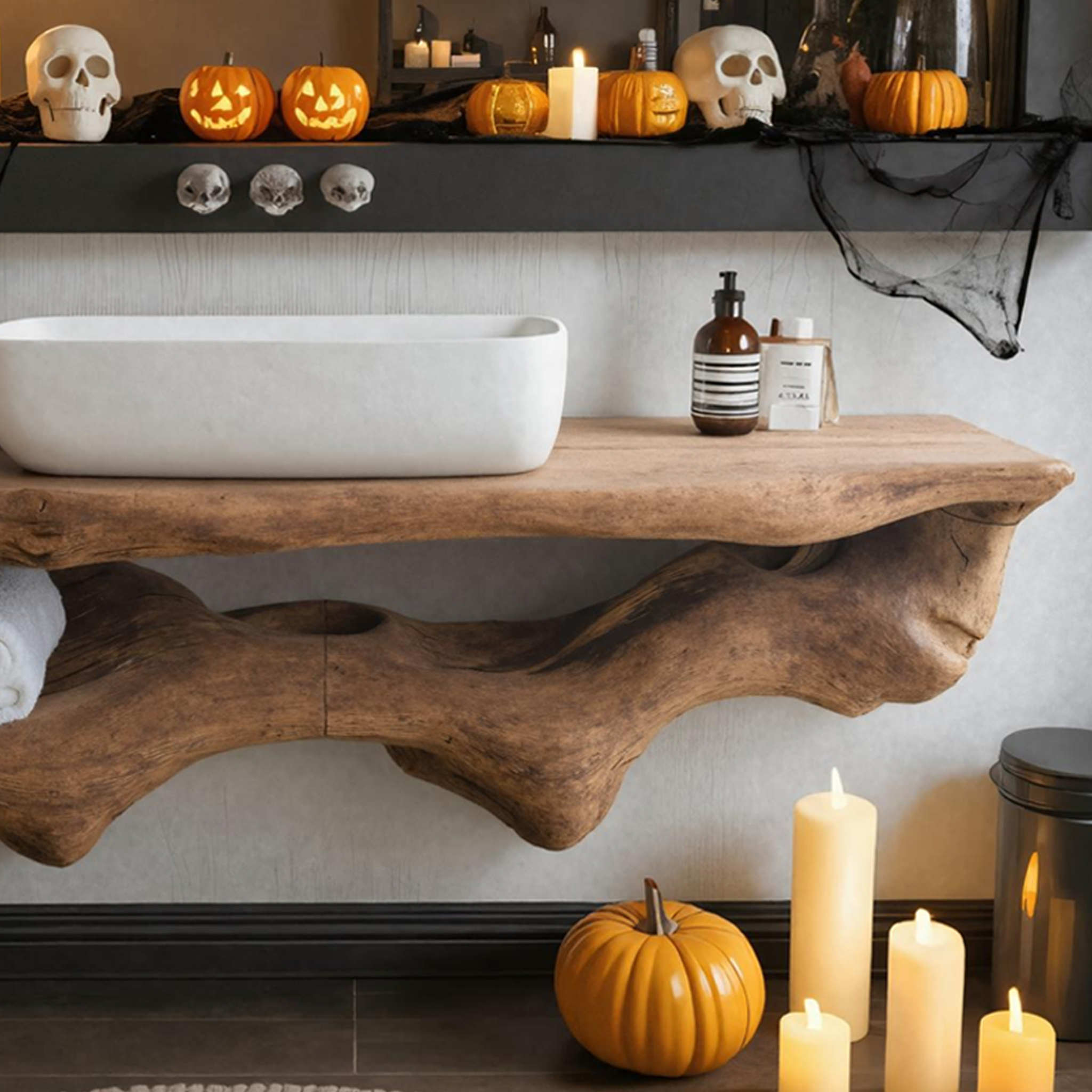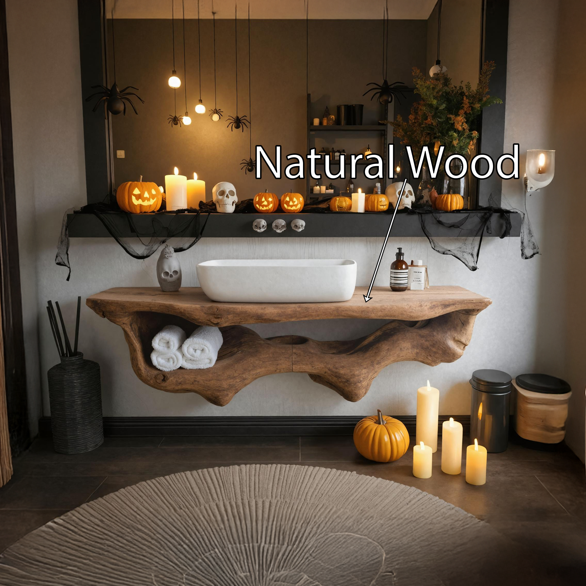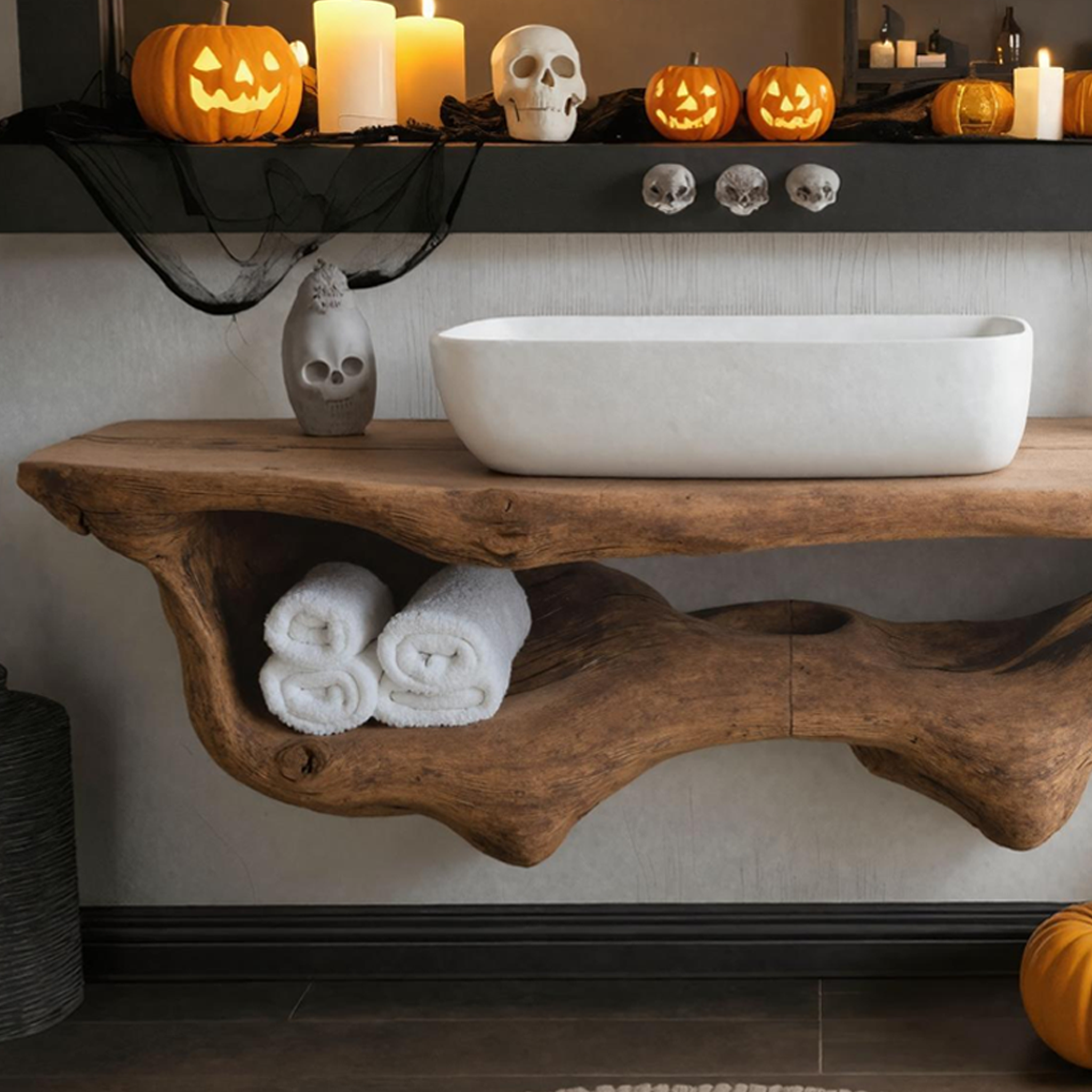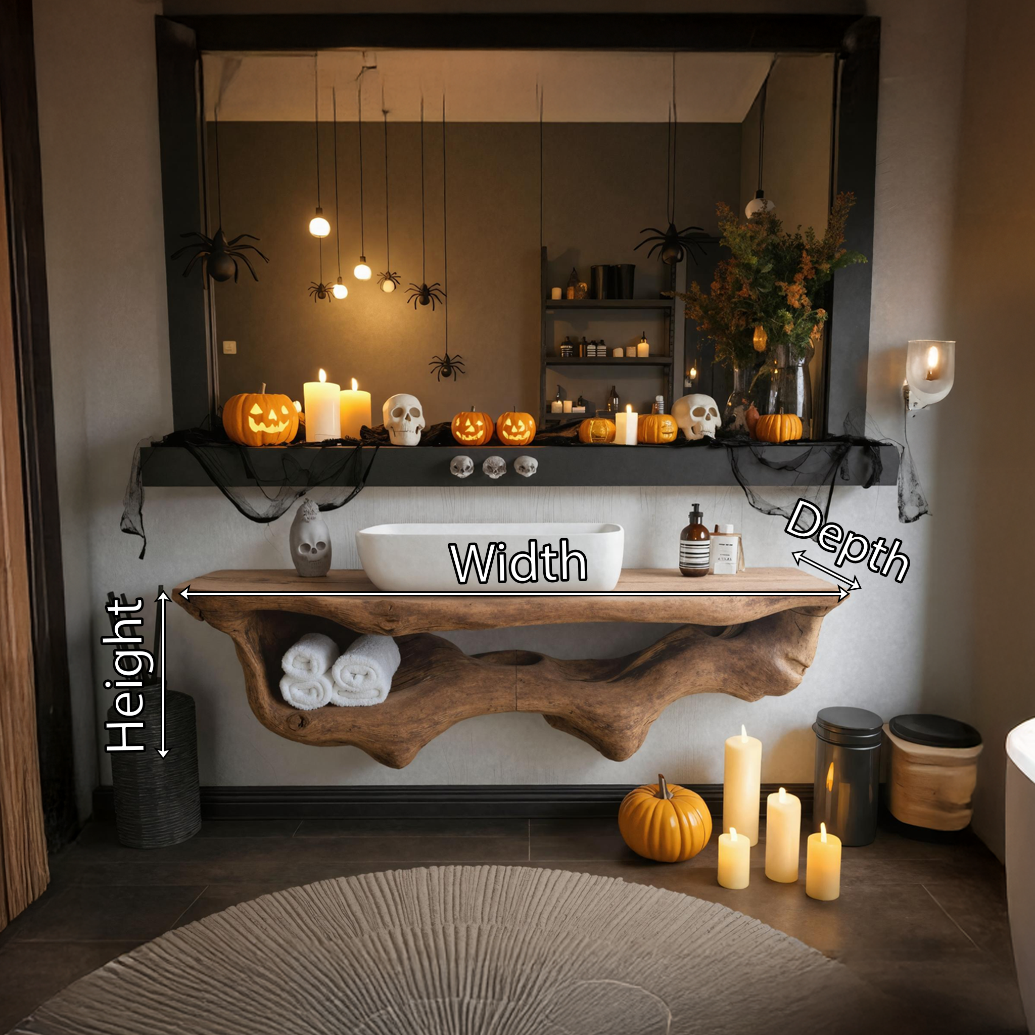 Transform your space this season with the Handcrafted Live Edge Shelf For Bathroom Design Halloween Furniture, a striking wall-mounted piece that merges the raw beauty of natural wood with artisanal craftsmanship. Each shelf highlights unique live-edge details and rich grain patterns, making it a one-of-a-kind accent for your bathroom. Ideal for storing daily essentials or showcasing festive Halloween décor, it brings both practicality and seasonal character to rustic, modern, or vintage interiors.