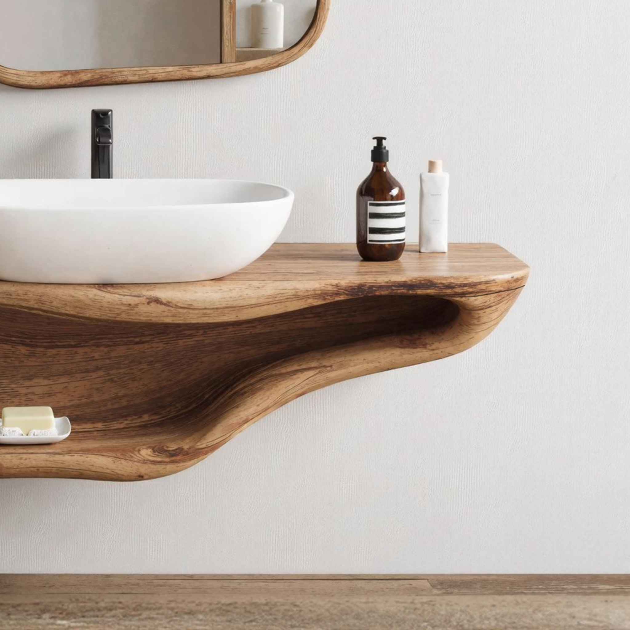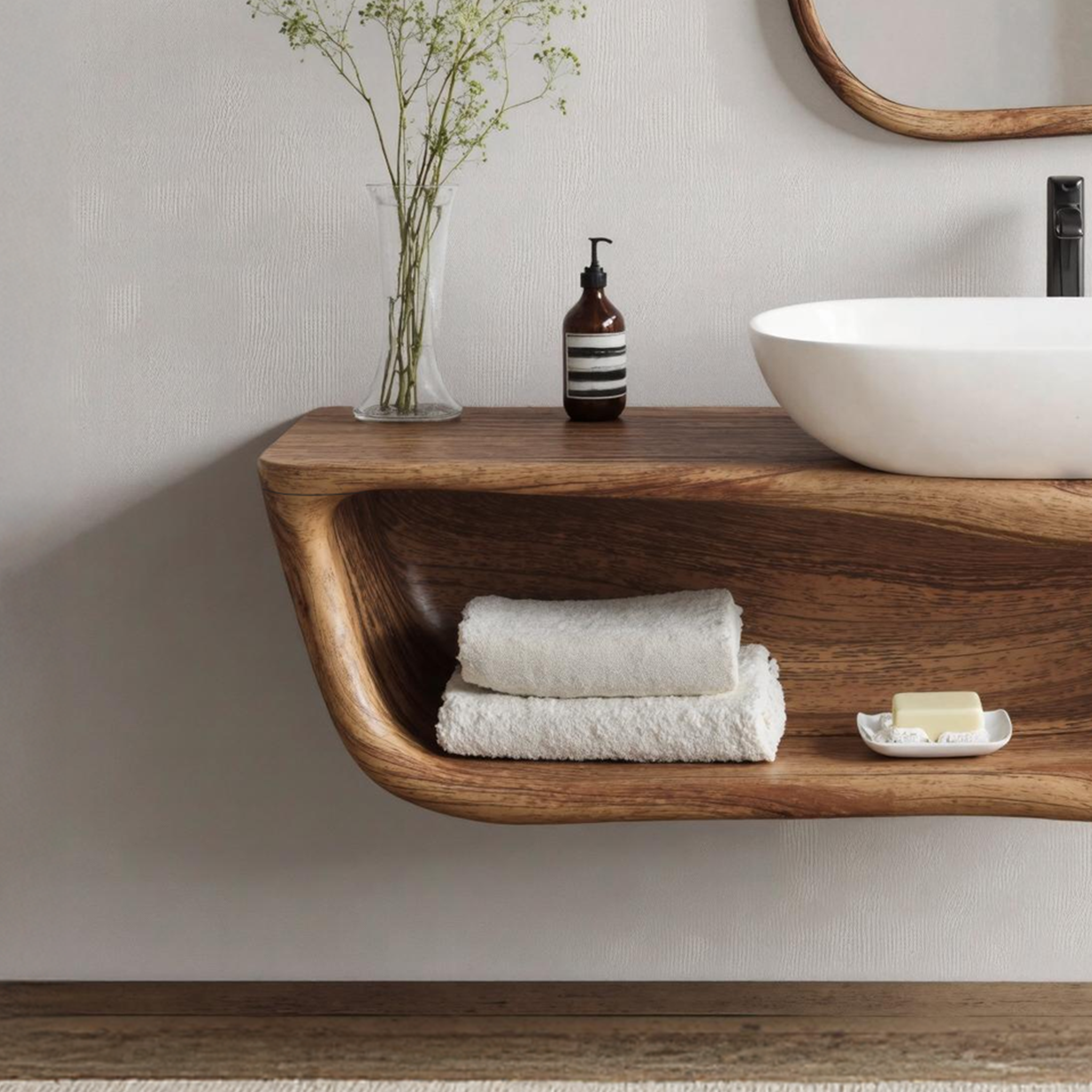 Elevate your bathroom with our Handmade Wooden Vanity, blending rustic charm with modern elegance for style and functionality.