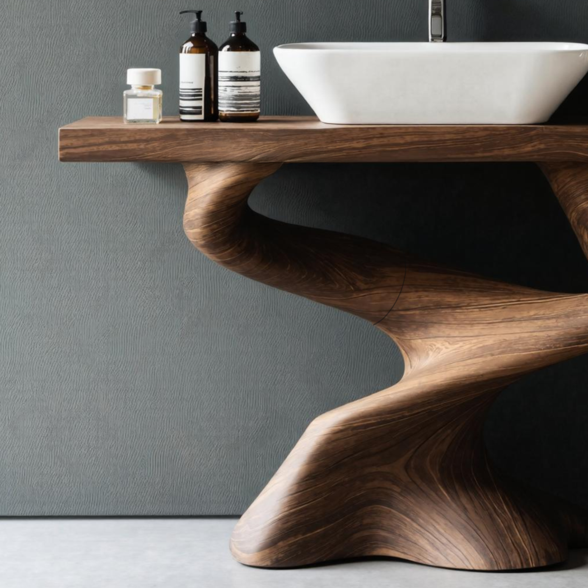 Transform your bathroom with the Handcrafted Vanity For Elegant Bathroom Furniture, a piece that seamlessly blends rustic charm with practical design. Made from solid wood, this vanity showcases a bold live edge, emphasizing the natural grain and texture of the material. With its clean lines and timeless style, it delivers both elegance and functionality, creating a warm, inviting, and sophisticated ambiance in any modern or farmhouse-inspired bathroom.