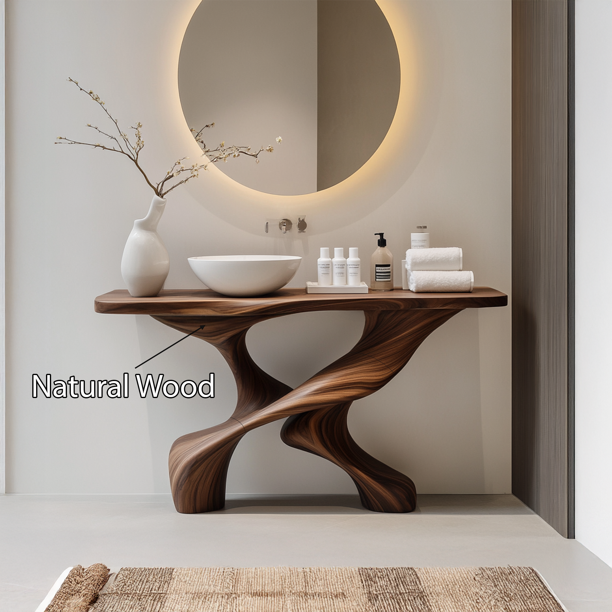 Transform your bathroom with the Handcrafted Vanity For Elegant Bathroom Furniture, a piece that seamlessly blends rustic charm with practical design. Made from solid wood, this vanity showcases a bold live edge, emphasizing the natural grain and texture of the material. With its clean lines and timeless style, it delivers both elegance and functionality, creating a warm, inviting, and sophisticated ambiance in any modern or farmhouse-inspired bathroom.