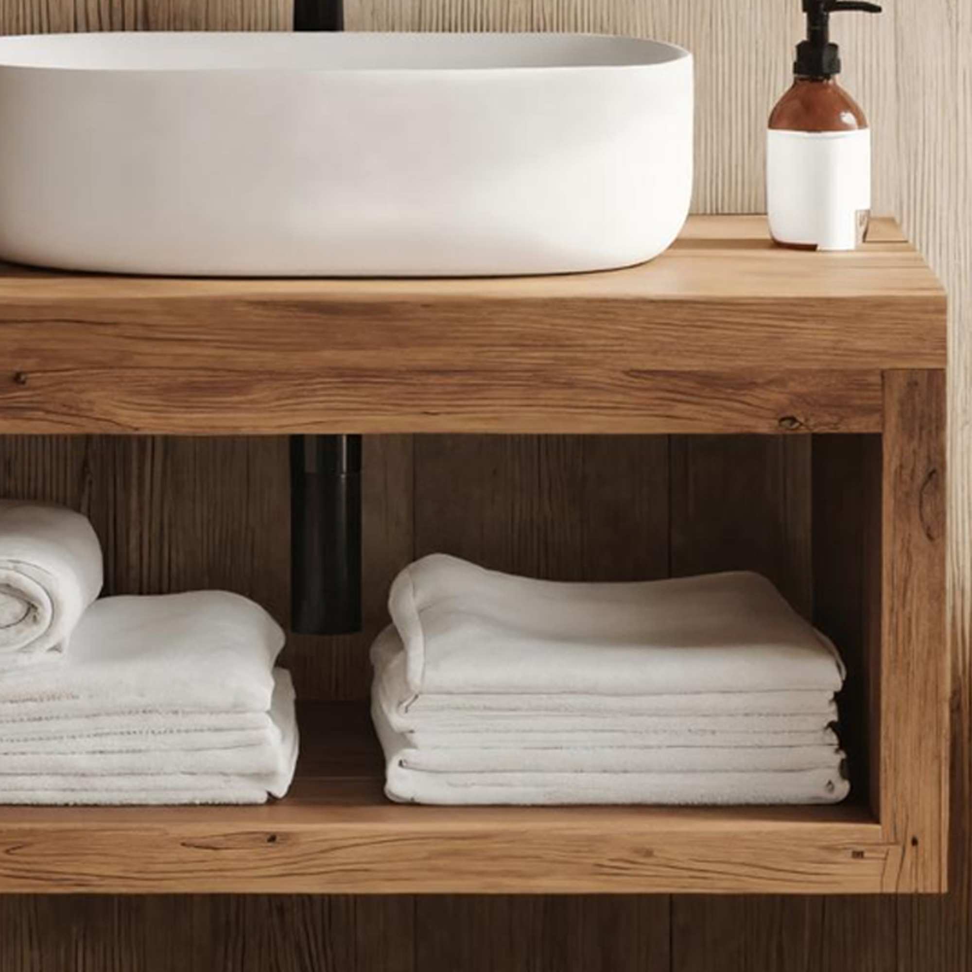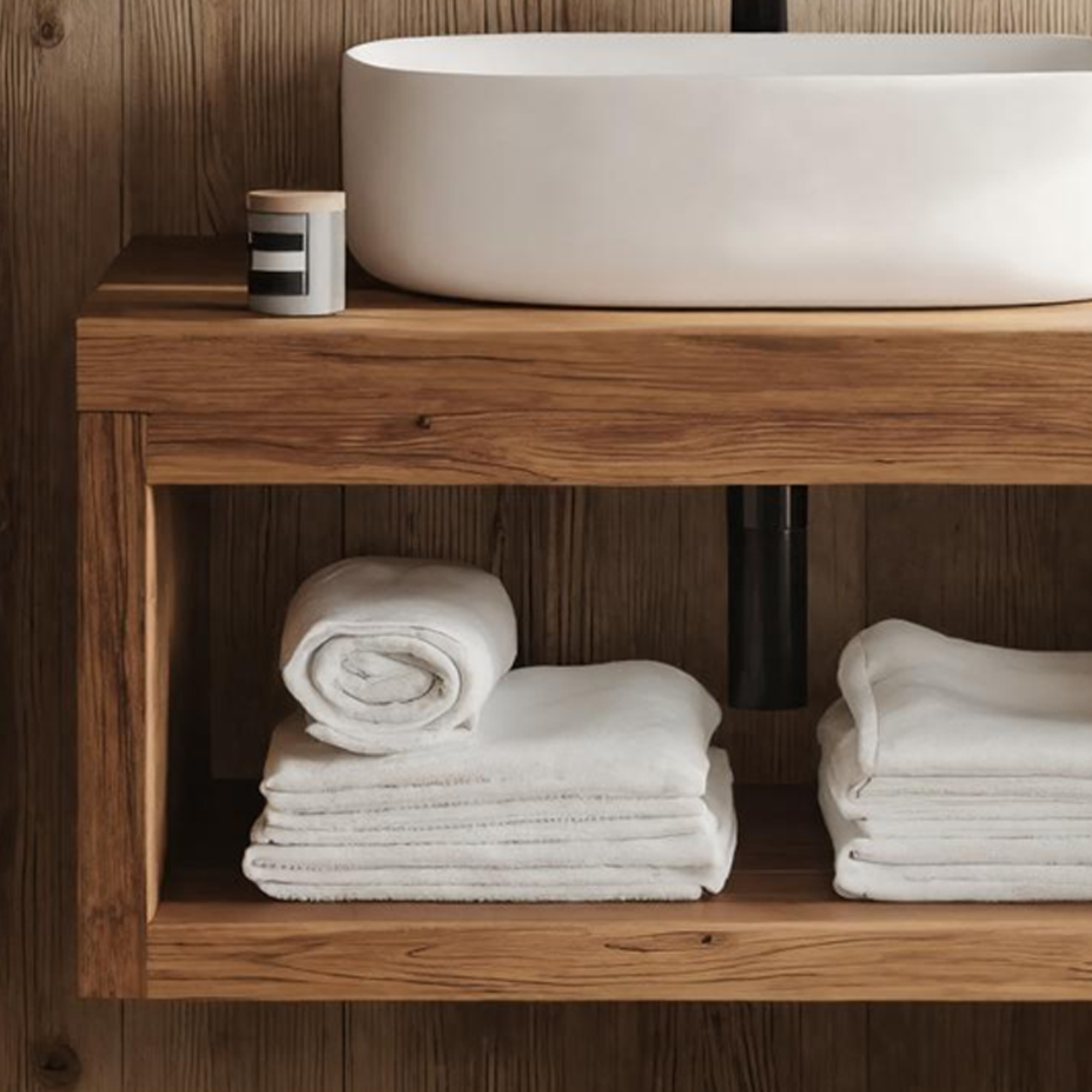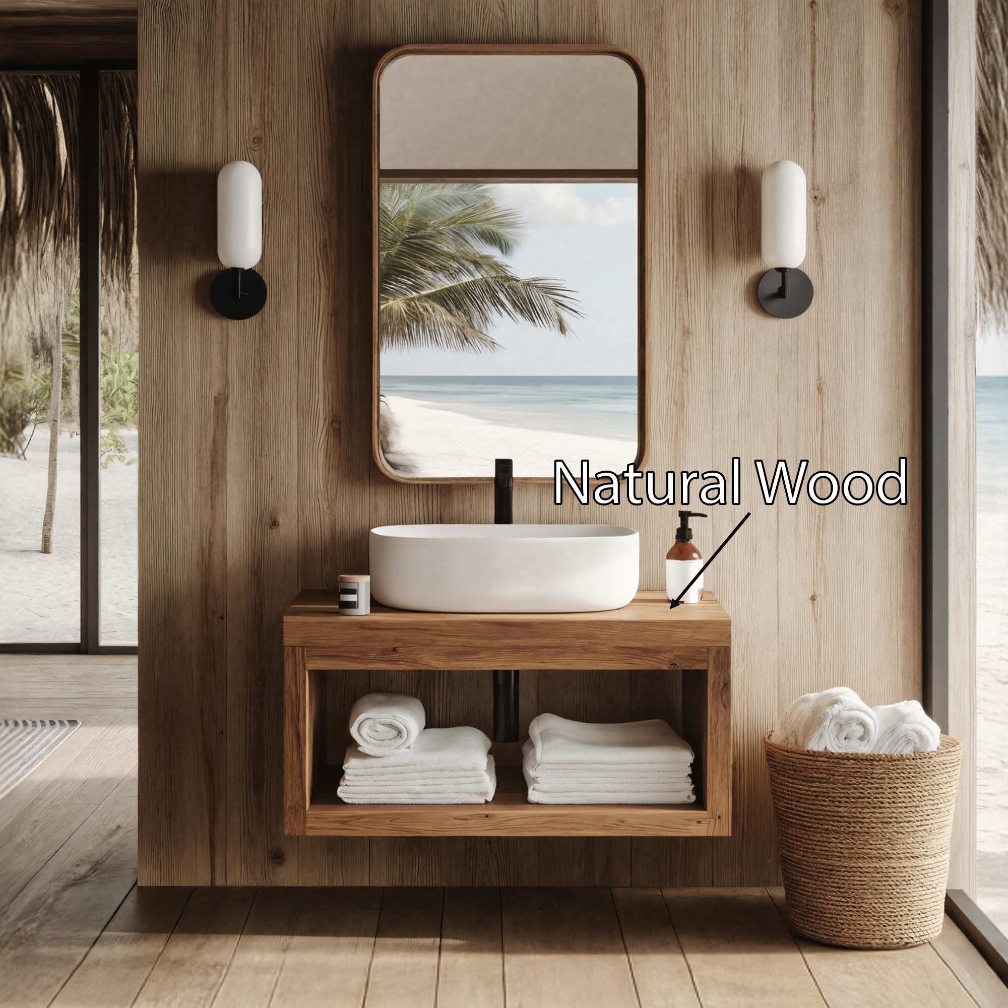 Crafted entirely from solid, rustic natural wood, each vanity is a testament to authentic craftsmanship. Variations in grain, tone, and shape are natural features of the material, ensuring your piece is unique. The images shown are examples — your vanity will have its own individual markings and character.