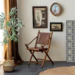 Leather folding chair is soft and breathable, with a delicate touch, wear-resistant and waterproof, balancing comfort and durability. The bamboo shaped frame is finely polished and paired with copper colored accessories, providing a warm and durable texture.