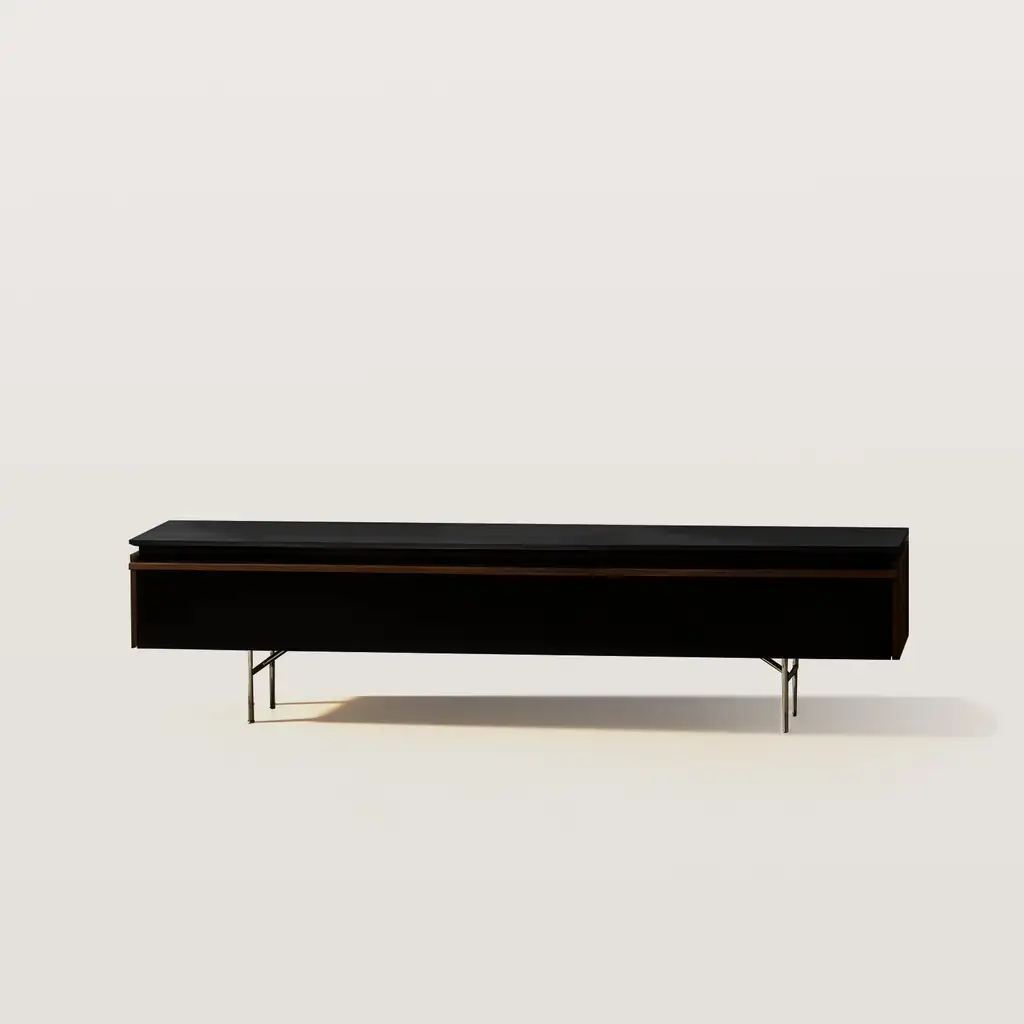 Crafted with a sleek, low-profile silhouette and supported by elegant metal legs, it offers both visual lightness and structural stability. The rich wood-grain finish brings warmth and sophistication, while the streamlined front maintains a clean, clutter-free appearance. Perfect for modern apartments and upscale homes, this media console delivers exceptional craftsmanship, intelligent storage, and timeless style—elevating everyday entertainment into a luxury experience.
