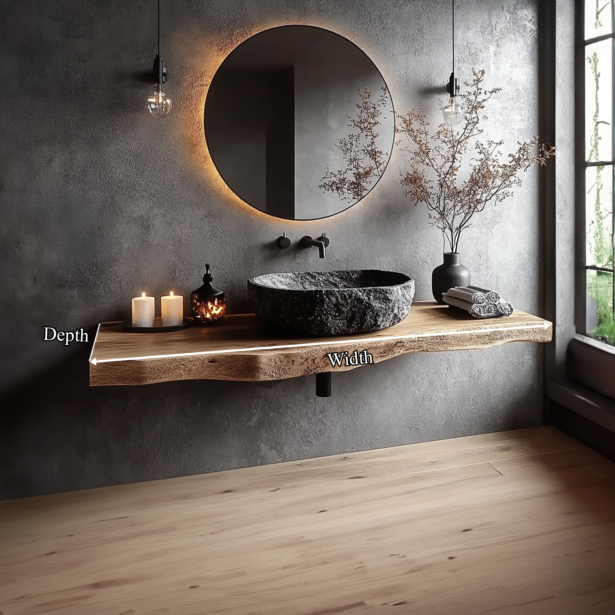 These vanities are perfect for creating an authentic rustic style. Live edges may become slightly raised or flaky during shipping due to the oil softening the wood. This can be easily fixed with a quick sanding. We include sandpaper for this purpose. As the oil fully cures, the live edge will harden.