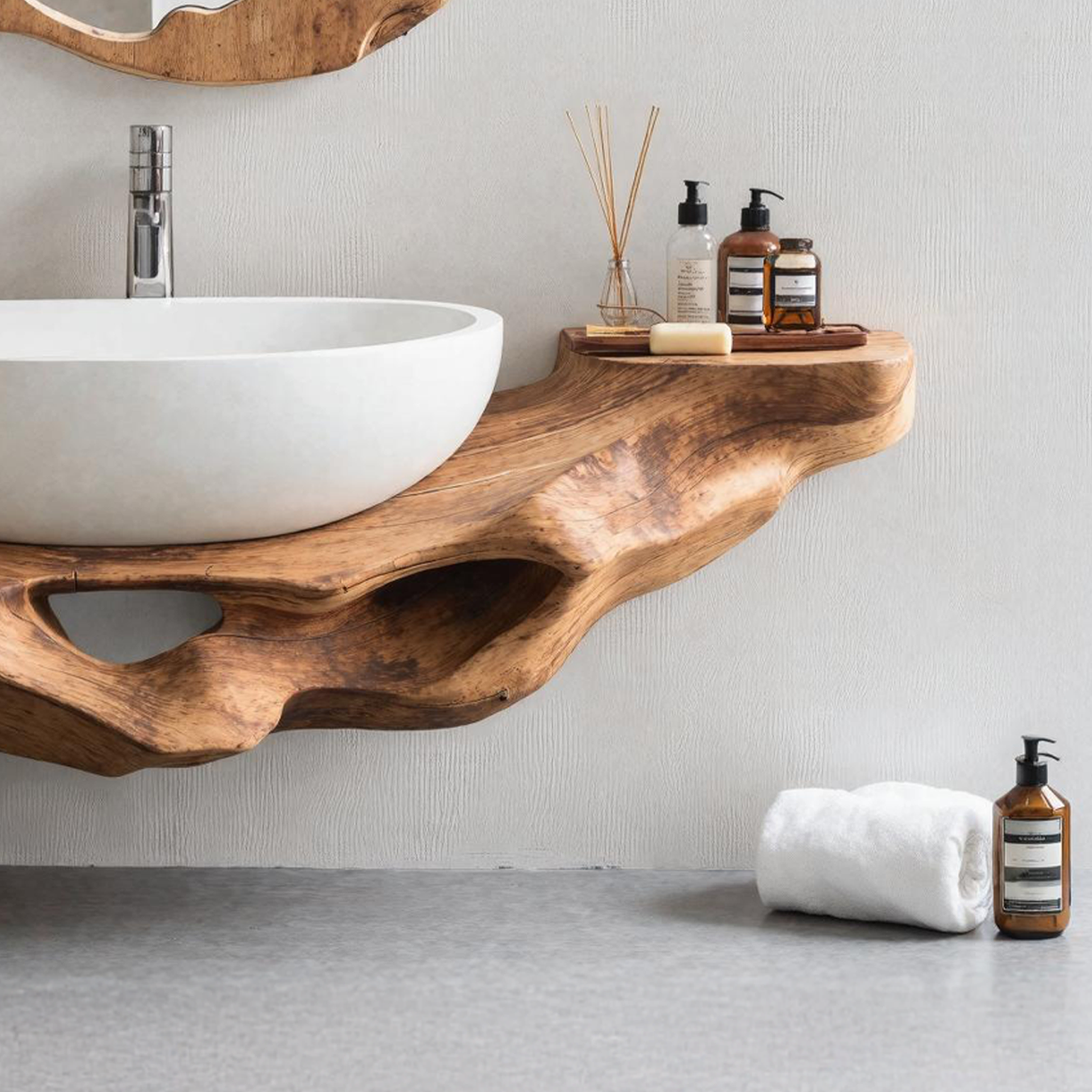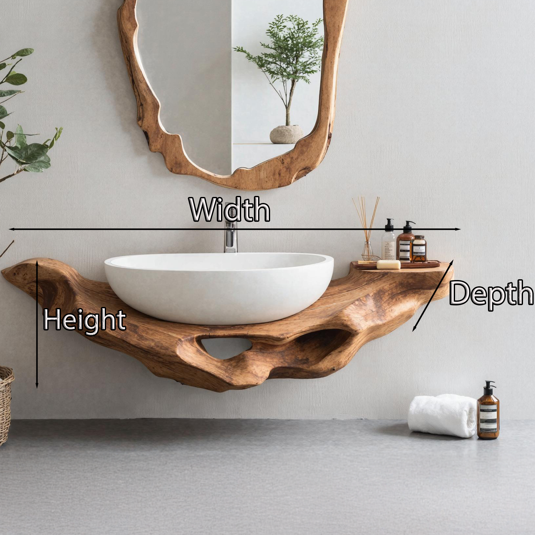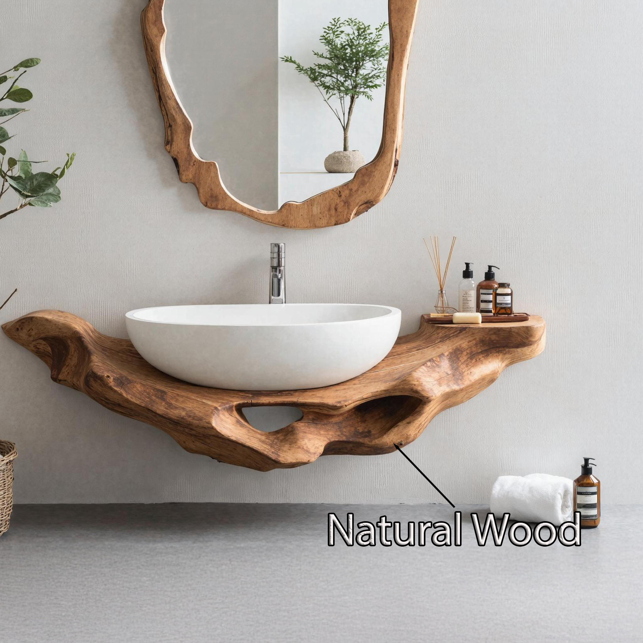Elevate your bathroom with our Handmade Wooden Vanity, blending rustic charm with modern elegance for style and functionality.