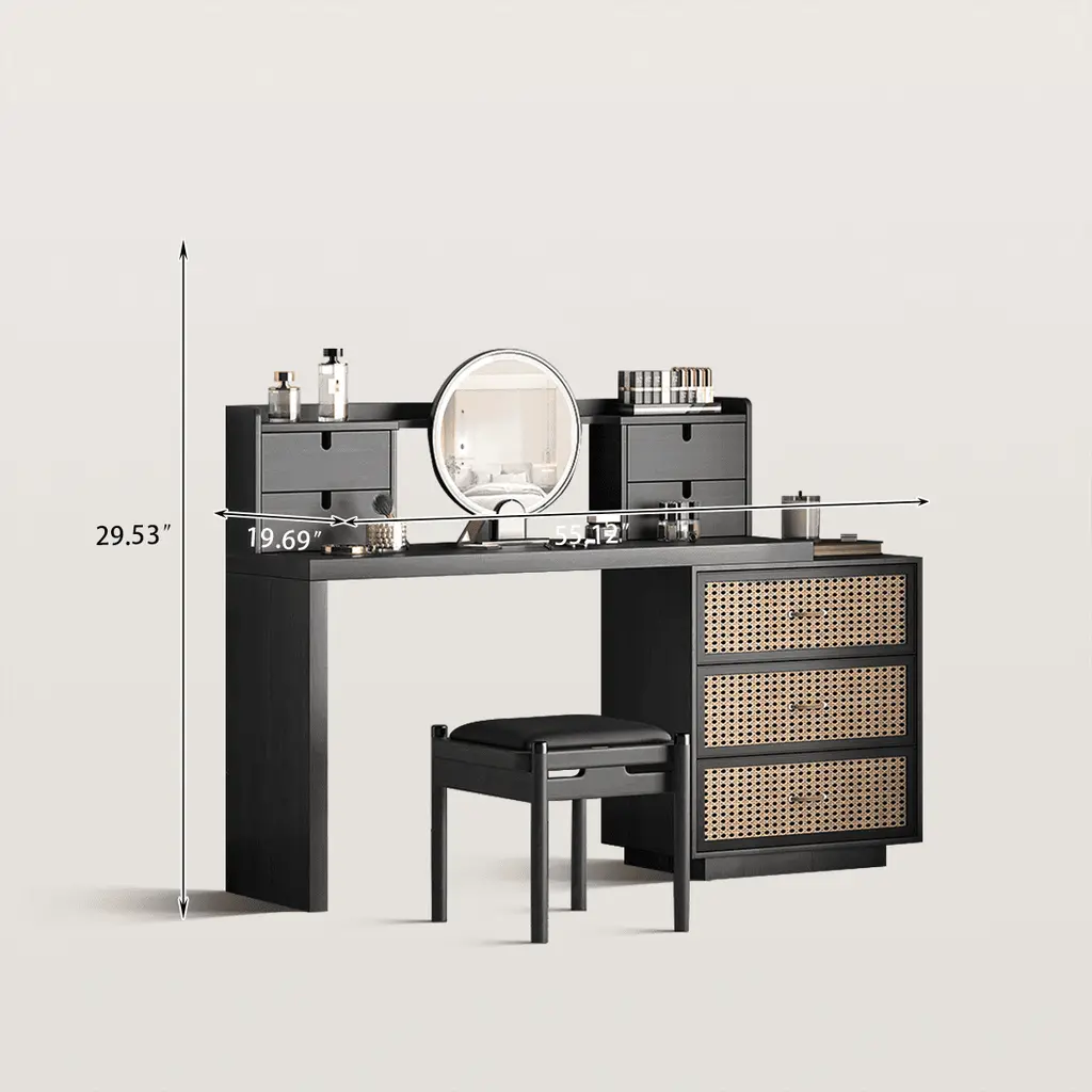 American-style Bedroom Makeup Vanity with Rattan Storage Cabinet