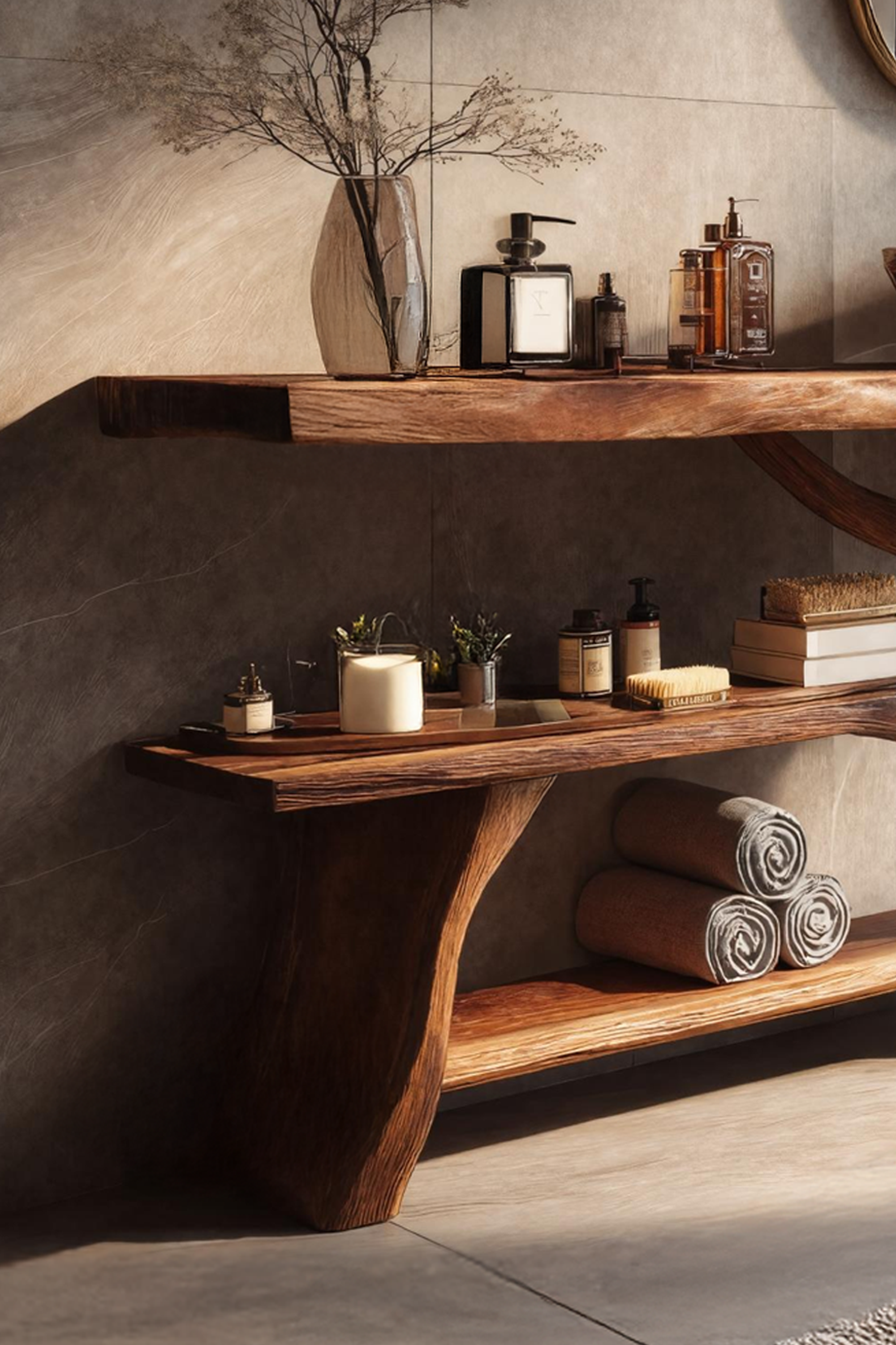 Every vanity features lively, natural wood grain and flowing live edges that highlight the timber’s inherent beauty. No two pieces are alike, giving your bathroom a unique and personal touch. Each surface is carefully finished to ensure durability while preserving its authentic character.