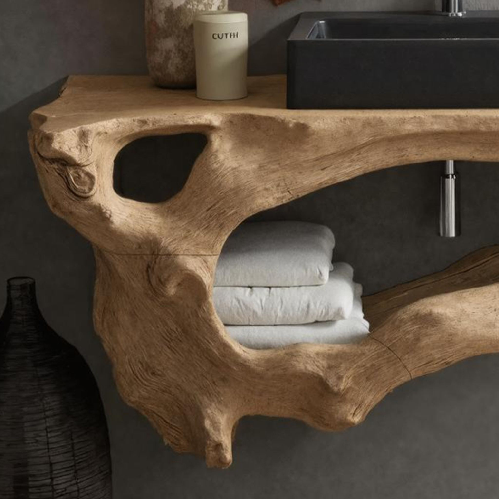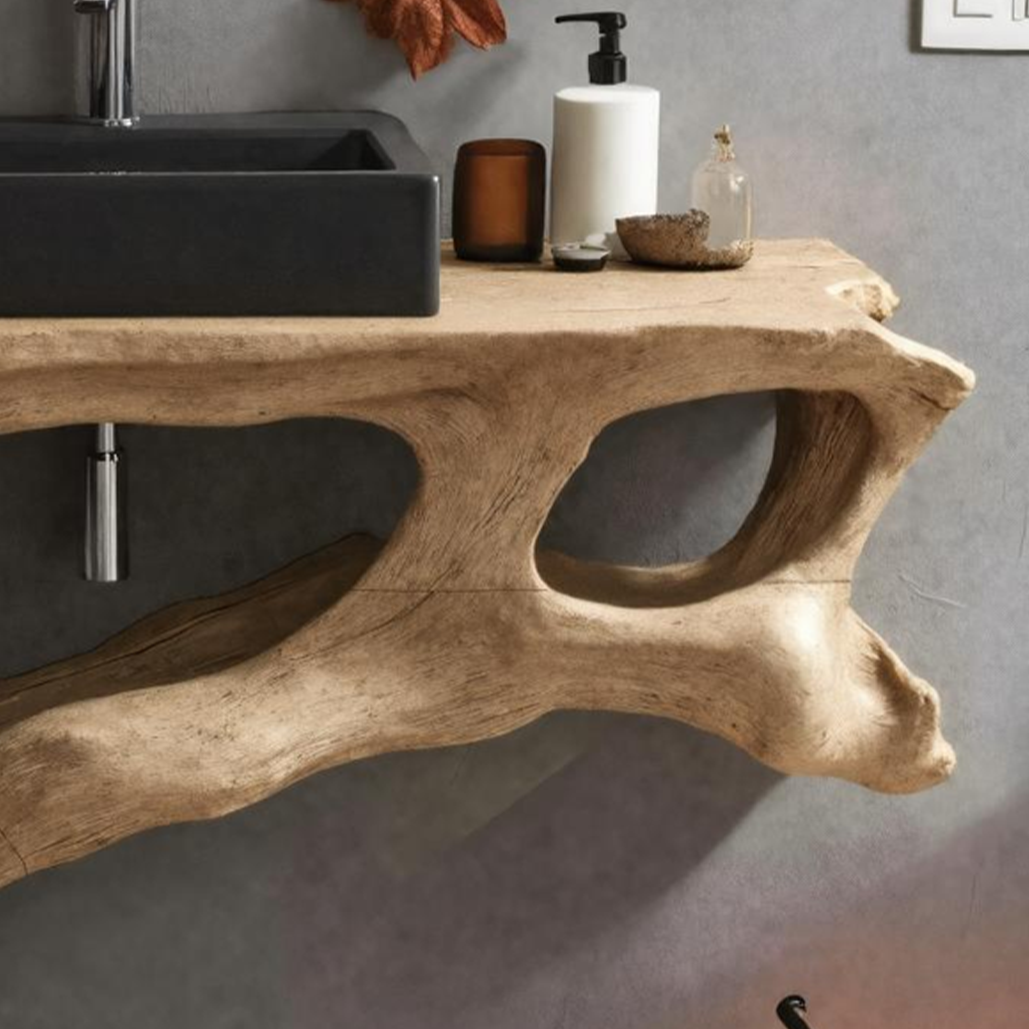 Elevate your bathroom with our Handmade Wooden Vanity, blending rustic charm with modern elegance for style and functionality.