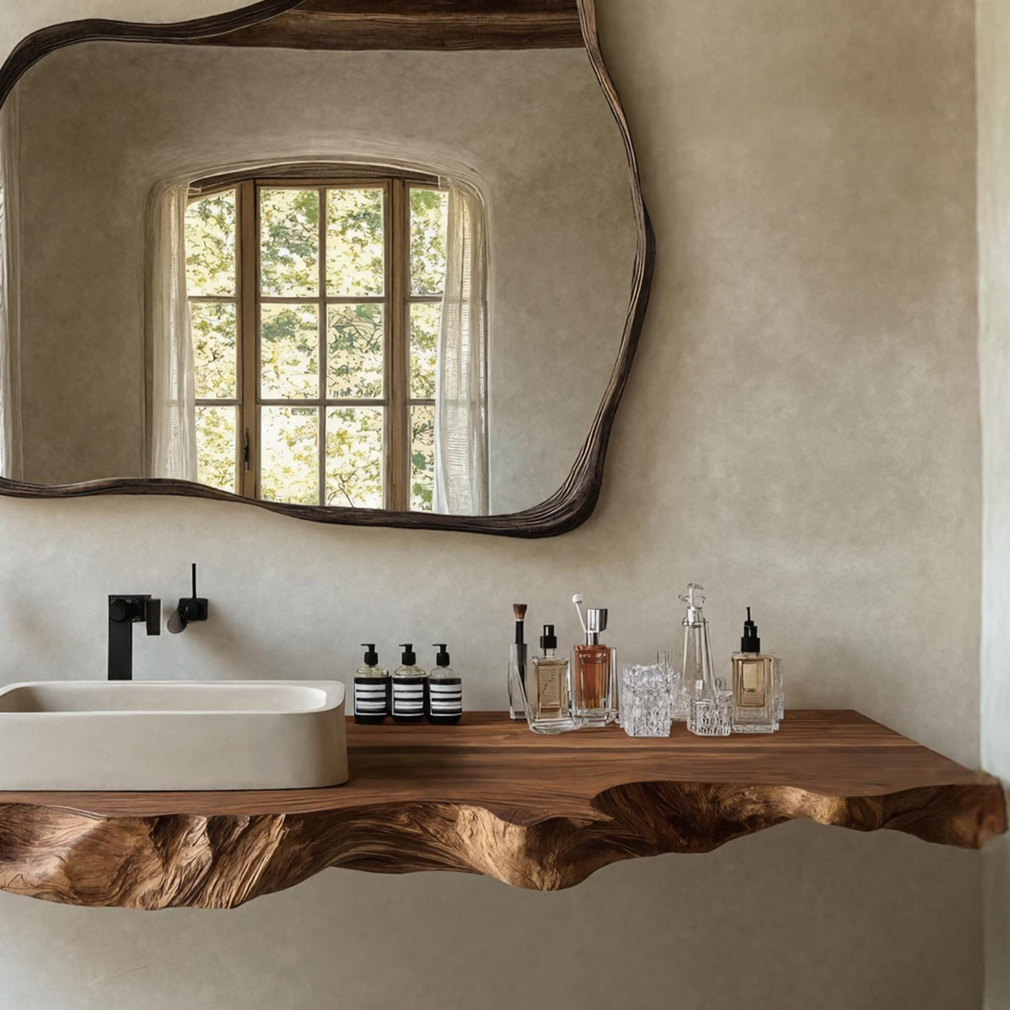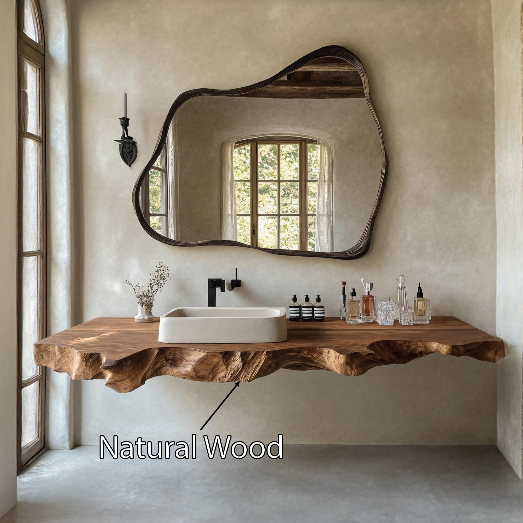 Elevate your bathroom with our Handmade Wooden Vanity, blending rustic charm with modern elegance for style and functionality.
