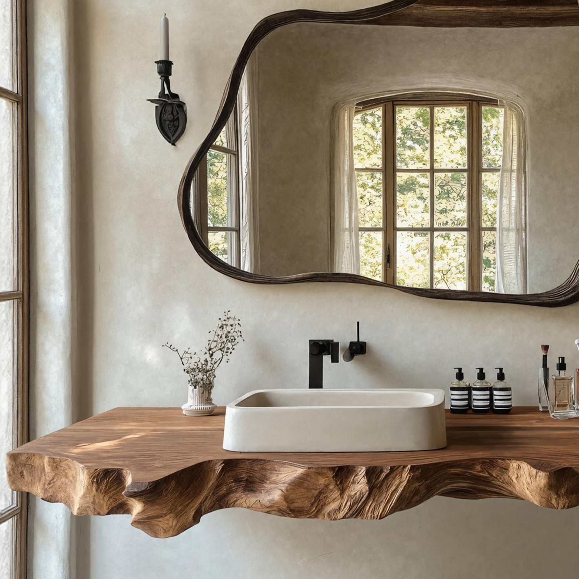 Modern Design: Combines rustic elements with contemporary design, perfect for any bathroom decor.