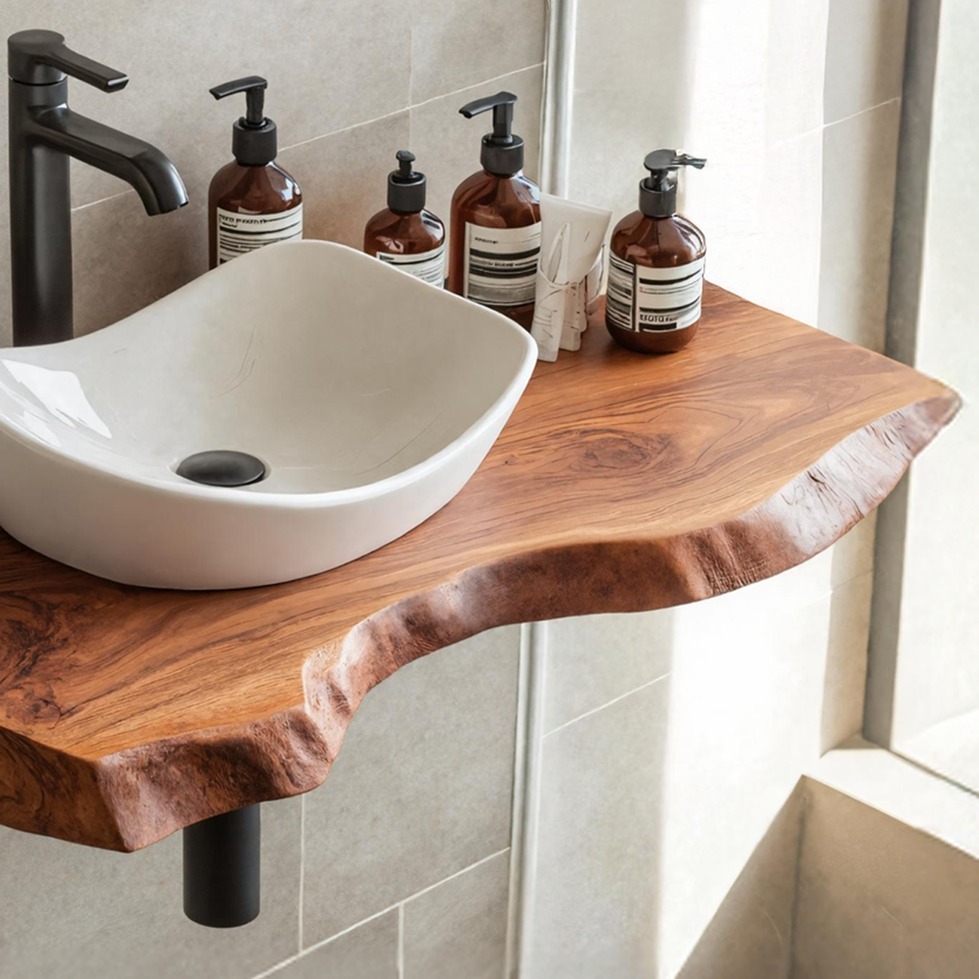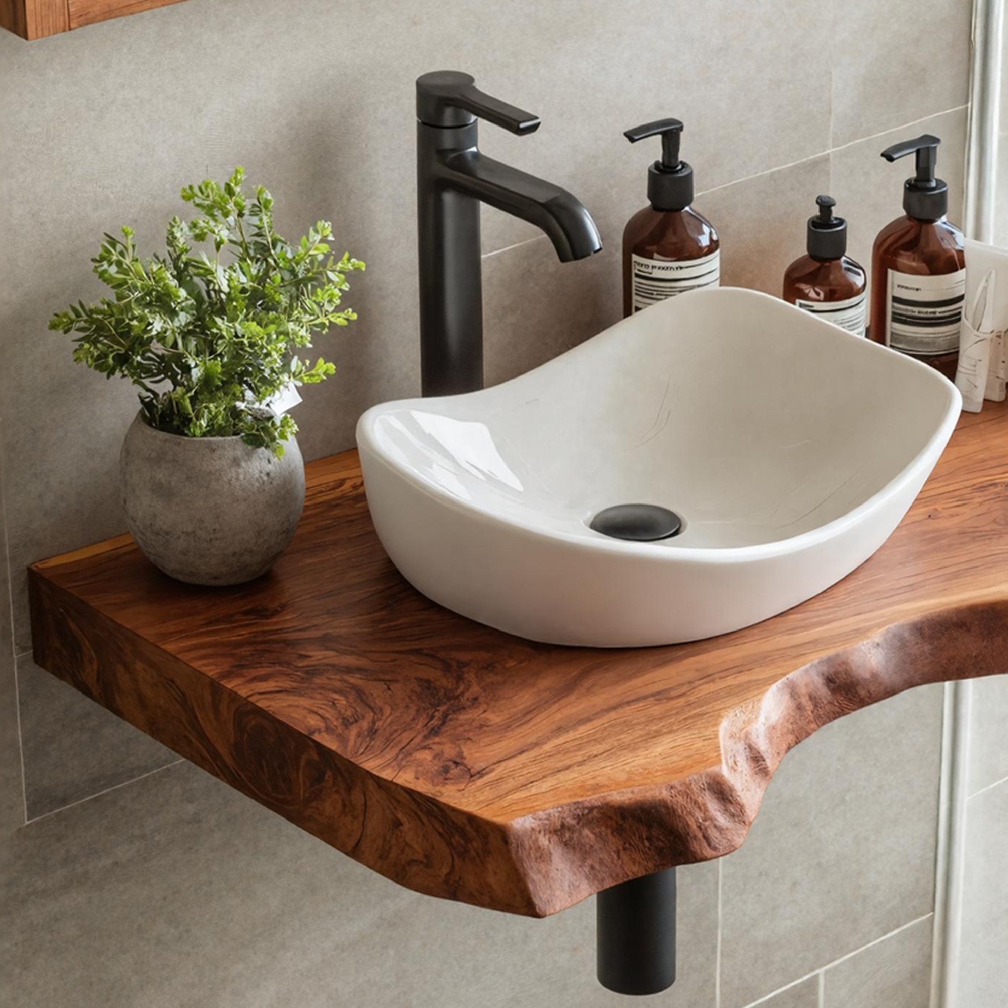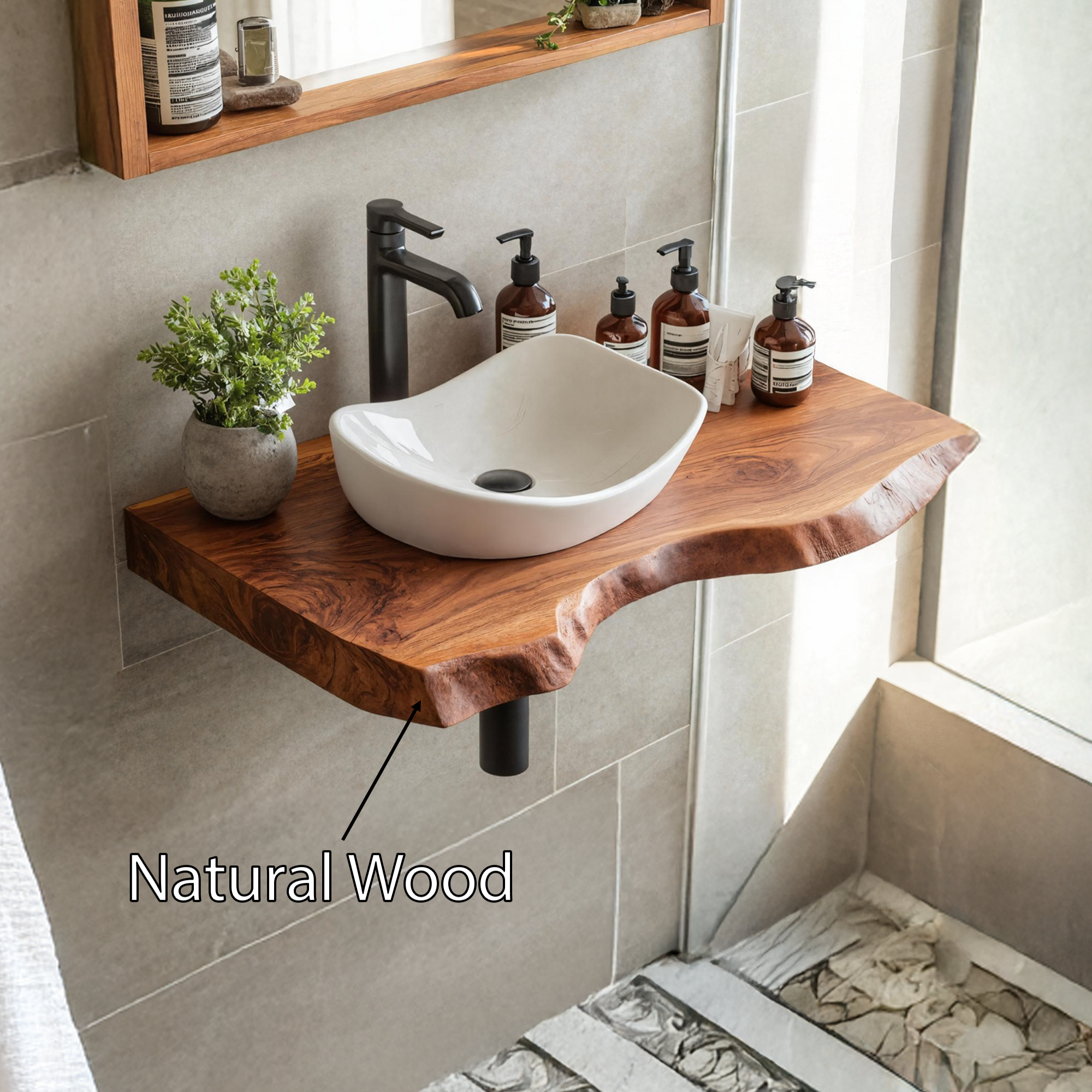 Modern Design: Combines rustic elements with contemporary design, perfect for any bathroom decor.