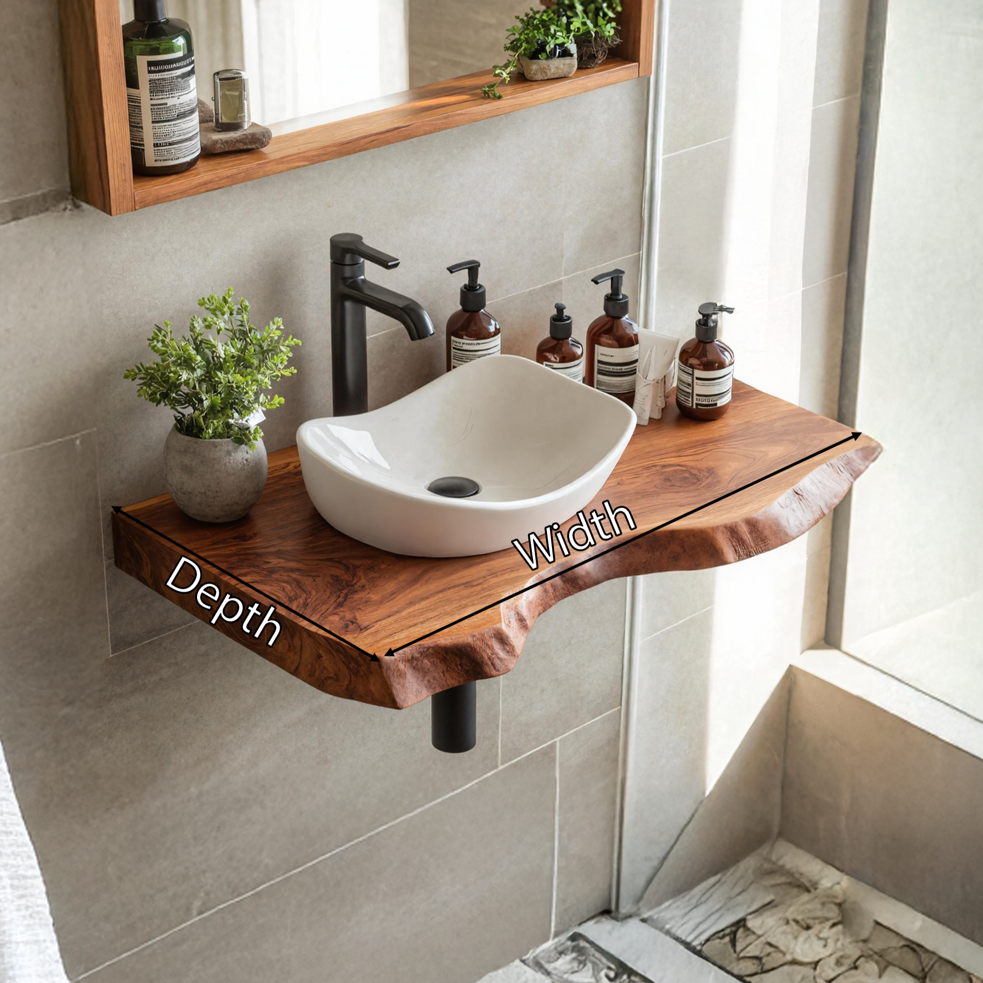 Elevate your bathroom with our Handmade Wooden Vanity, blending rustic charm with modern elegance for style and functionality.