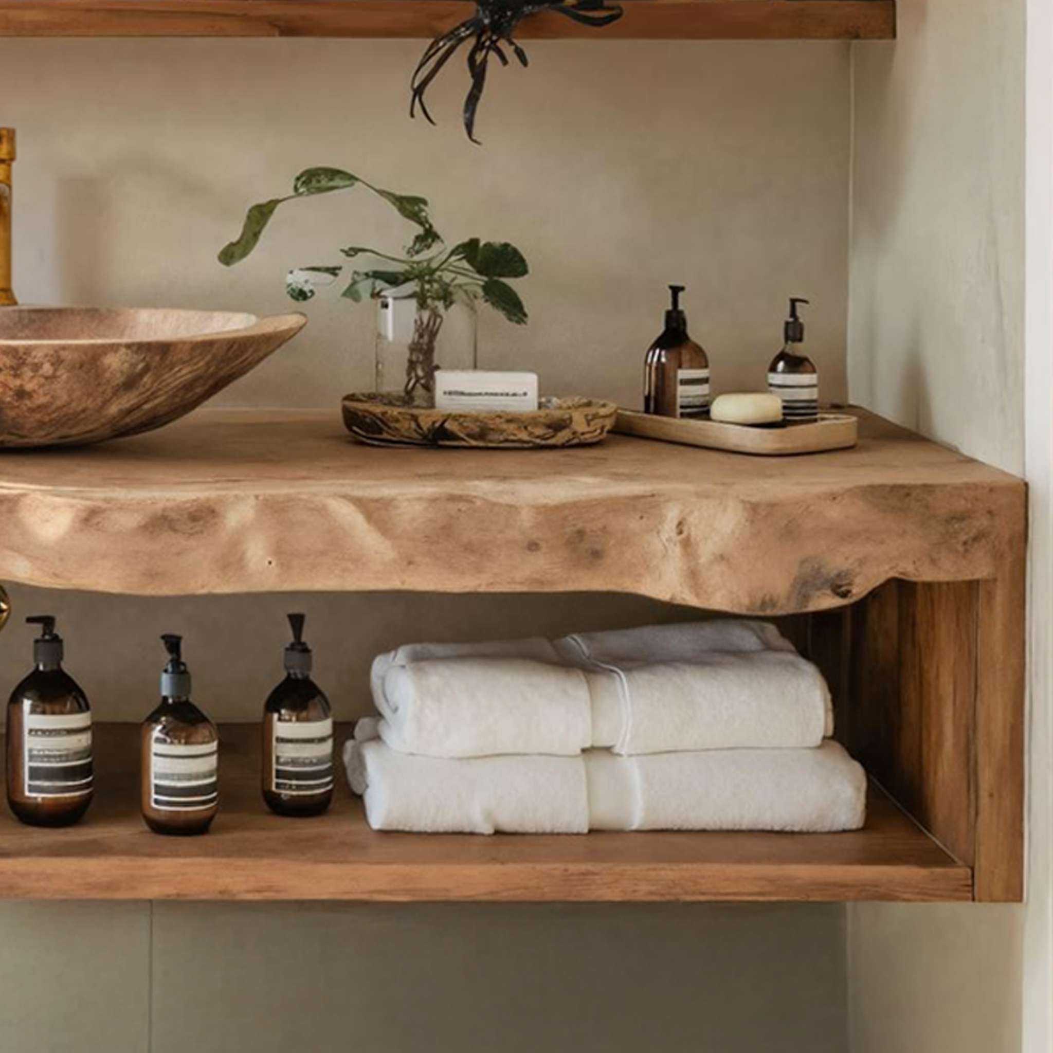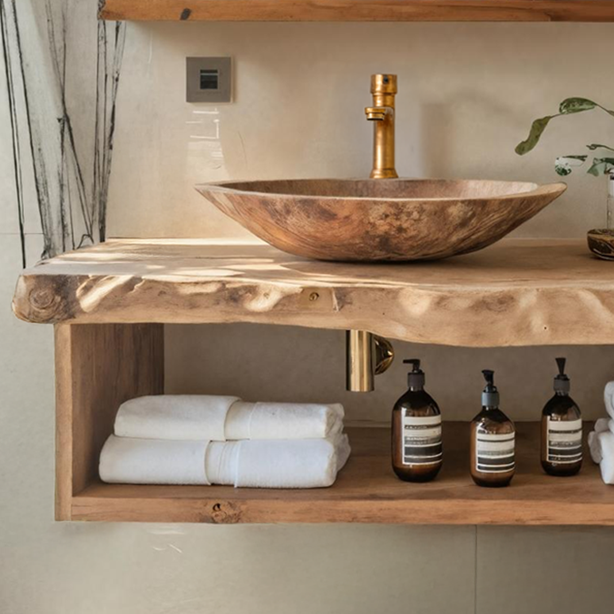 Each vanity showcases the natural beauty of solid wood, with distinctive grain patterns, organic edges, and unique textures that ensure no two pieces are alike. Every curve and contour celebrates the character of the timber, making your vanity truly one of a kind. Finished to highlight the wood’s warmth, it adds depth and elegance to your bathroom.