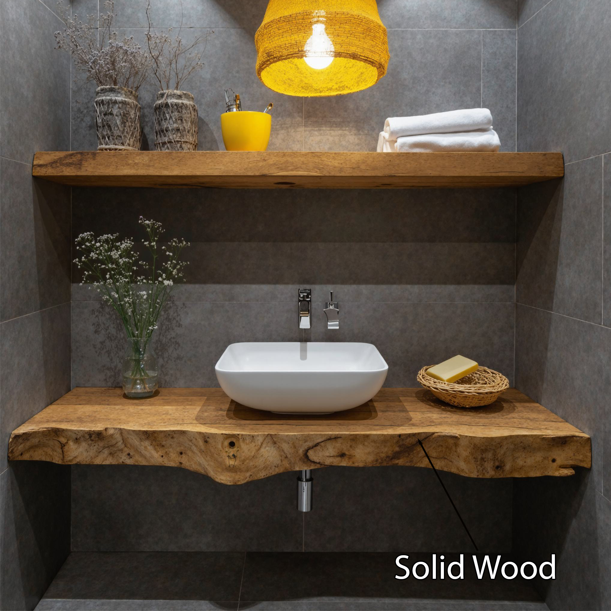 Elevate your bathroom with our Handmade Wooden Vanity, blending rustic charm with modern elegance for style and functionality.