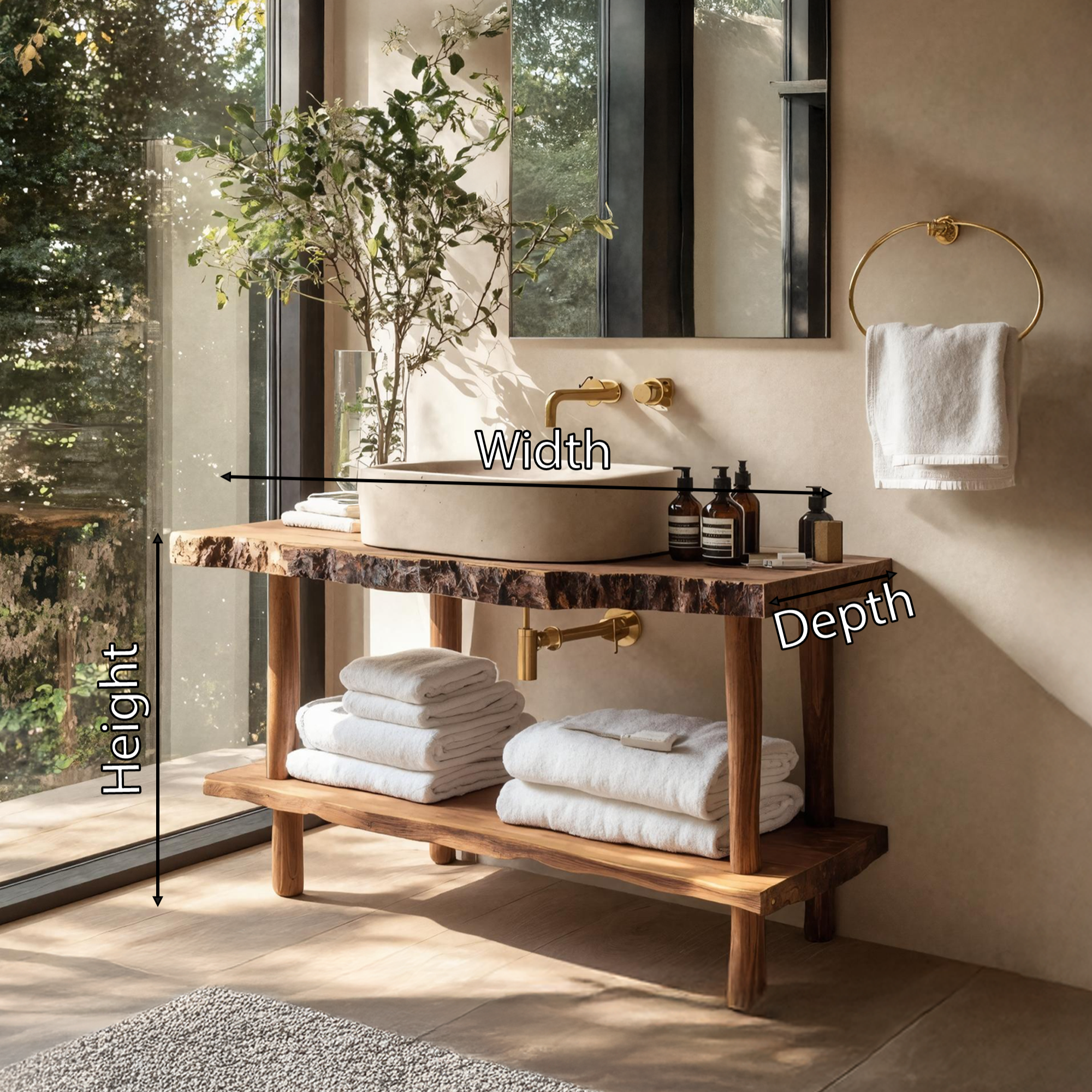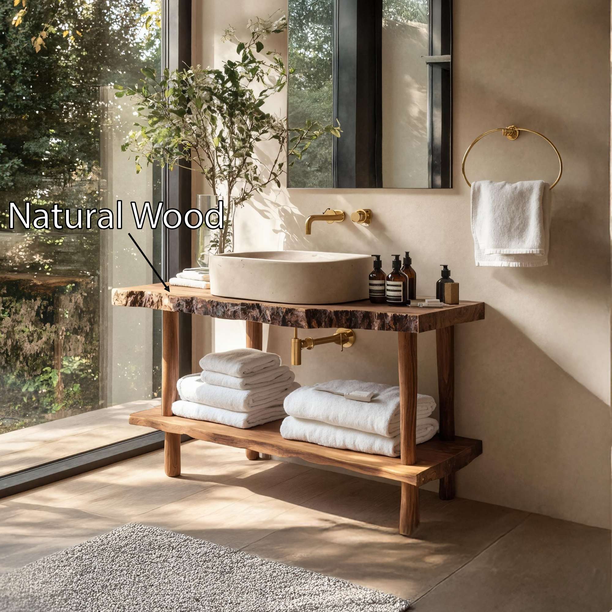 Every vanity features lively, natural wood grain and flowing live edges that highlight the timber’s inherent beauty. No two pieces are alike, giving your bathroom a unique and personal touch. Each surface is carefully finished to ensure durability while preserving its authentic character.