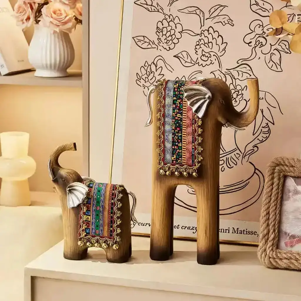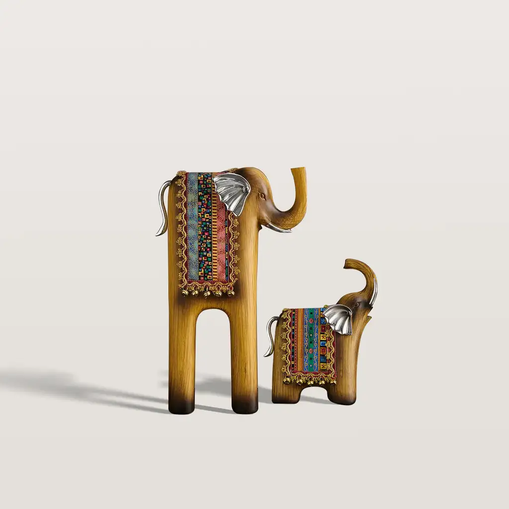 This antique style wooden elephant art decoration perfectly blends retro texture with artistic form, injecting a unique exotic atmosphere into your home space. Using high-quality resin material to imitate the texture of wood carving, the surface has delicate texture and retro antique craftsmanship to restore the traditional wood carving effect, presenting a sense of historical weight that is weathered and stable.