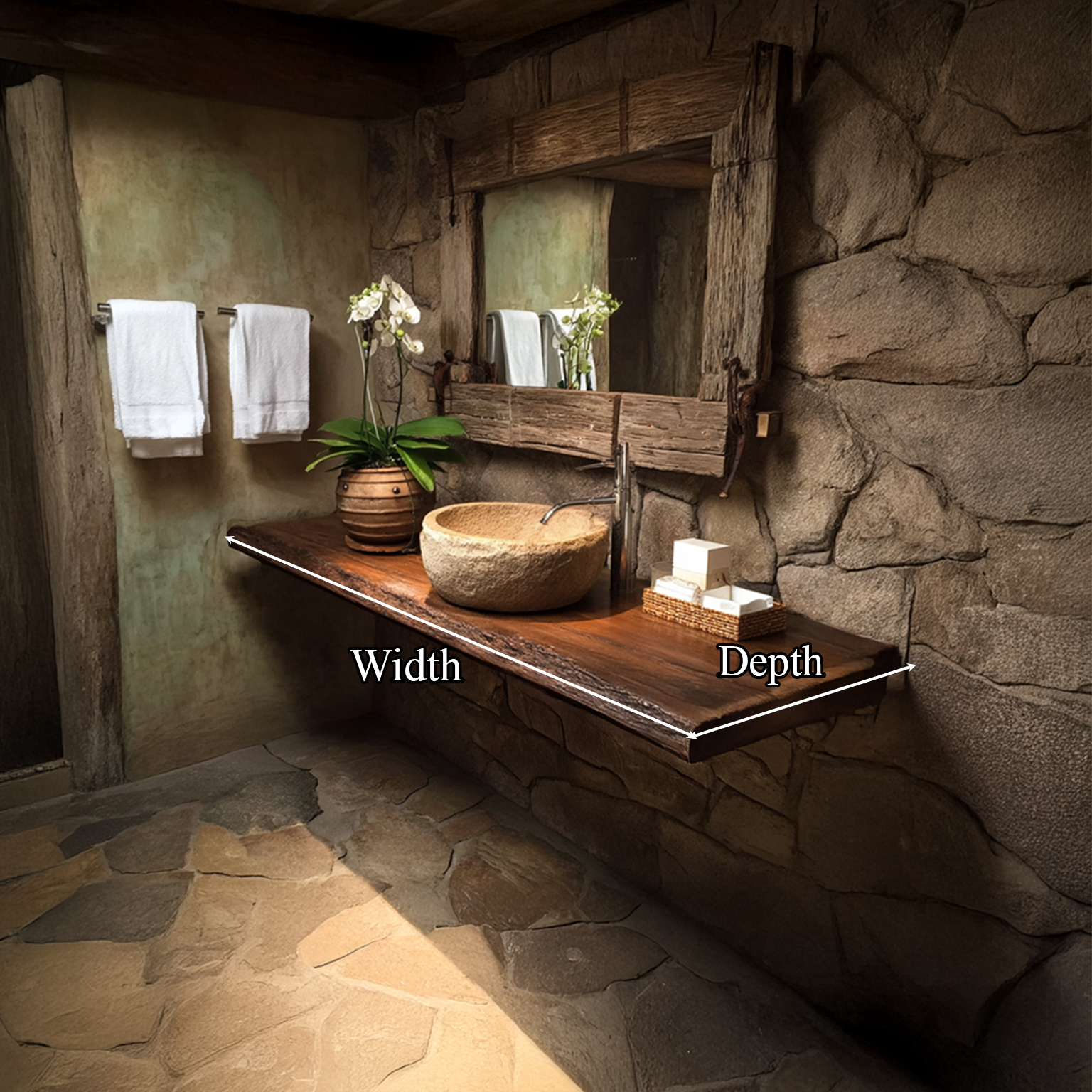 These vanities are perfect for creating an authentic rustic style. Live edges may become slightly raised or flaky during shipping due to the oil softening the wood. This can be easily fixed with a quick sanding. We include sandpaper for this purpose. As the oil fully cures, the live edge will harden.