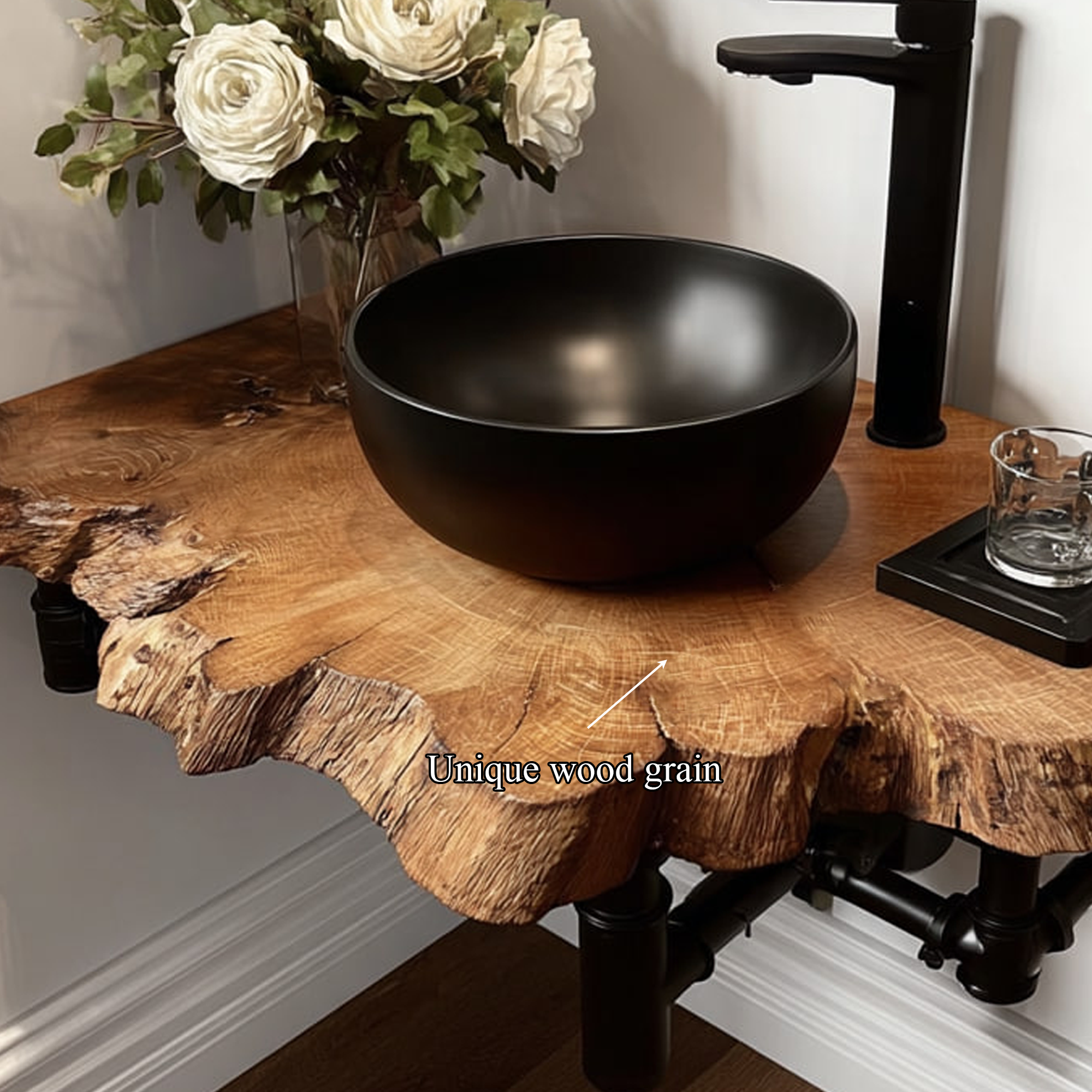 These vanities are perfect for creating an authentic rustic style. Live edges may become slightly raised or flaky during shipping due to the oil softening the wood. This can be easily fixed with a quick sanding. We include sandpaper for this purpose. As the oil fully cures, the live edge will harden.