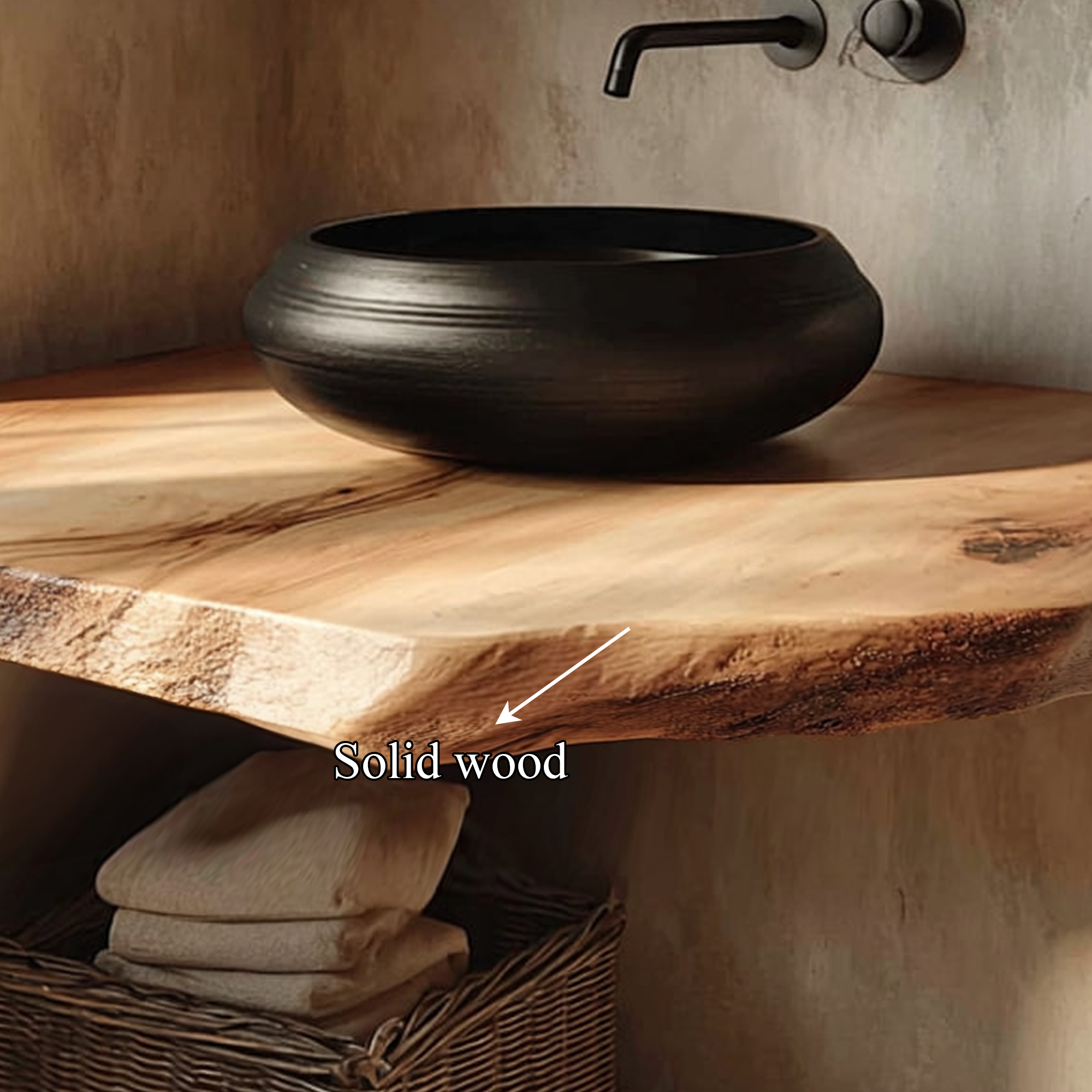 These vanities are perfect for creating an authentic rustic style. Live edges may become slightly raised or flaky during shipping due to the oil softening the wood. This can be easily fixed with a quick sanding. We include sandpaper for this purpose. As the oil fully cures, the live edge will harden.