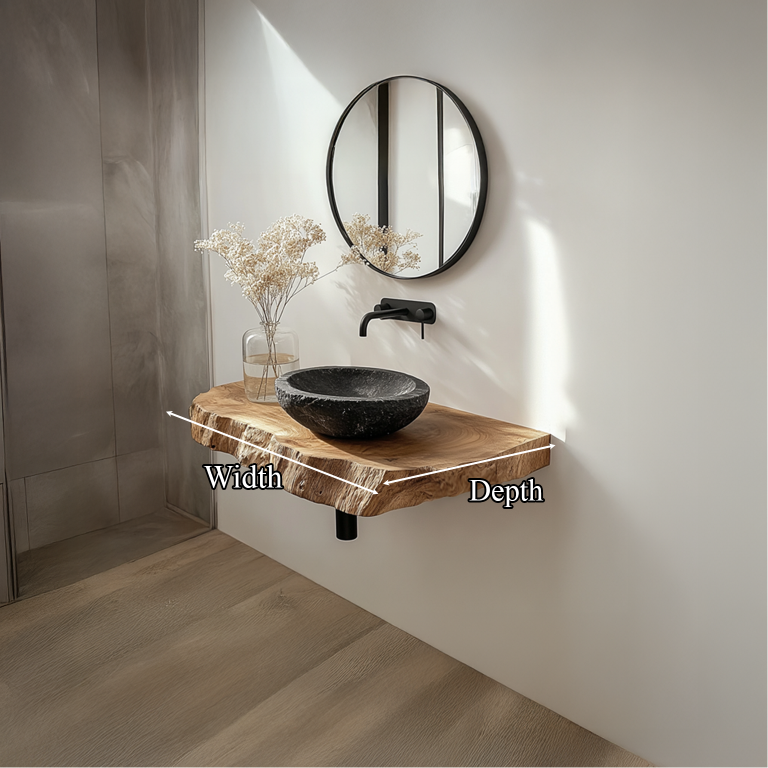 Redefine your space with the Midcentury Floating Shelf Vanity Bathroom, a handcrafted vanity that blends mid-century elegance with modern functionality. Built from solid wood and finished with clean lines, each piece highlights natural grains and timeless craftsmanship. Its floating shelf design offers both practicality and sophistication, making it the perfect centerpiece for a stylish, contemporary bathroom.
