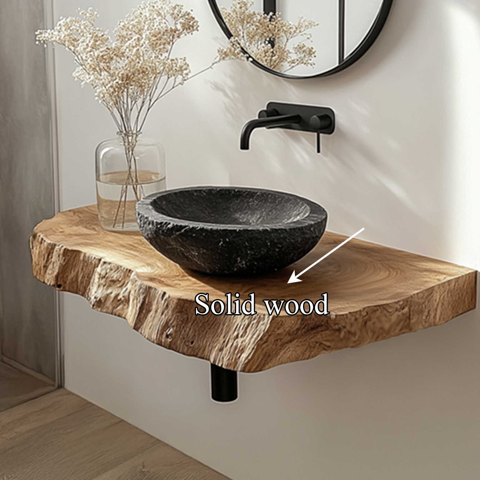 These vanities are perfect for creating an authentic rustic style. Live edges may become slightly raised or flaky during shipping due to the oil softening the wood. This can be easily fixed with a quick sanding. We include sandpaper for this purpose. As the oil fully cures, the live edge will harden.
