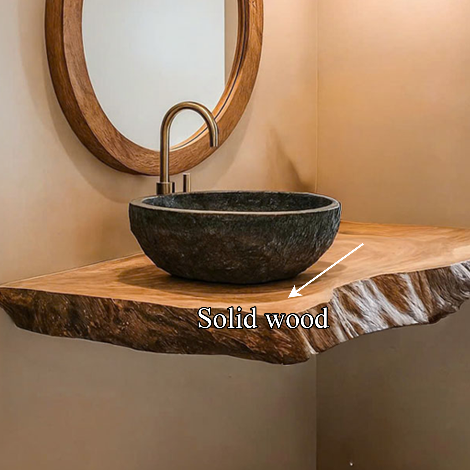 These vanities are perfect for creating an authentic rustic style. Live edges may become slightly raised or flaky during shipping due to the oil softening the wood. This can be easily fixed with a quick sanding. We include sandpaper for this purpose. As the oil fully cures, the live edge will harden.