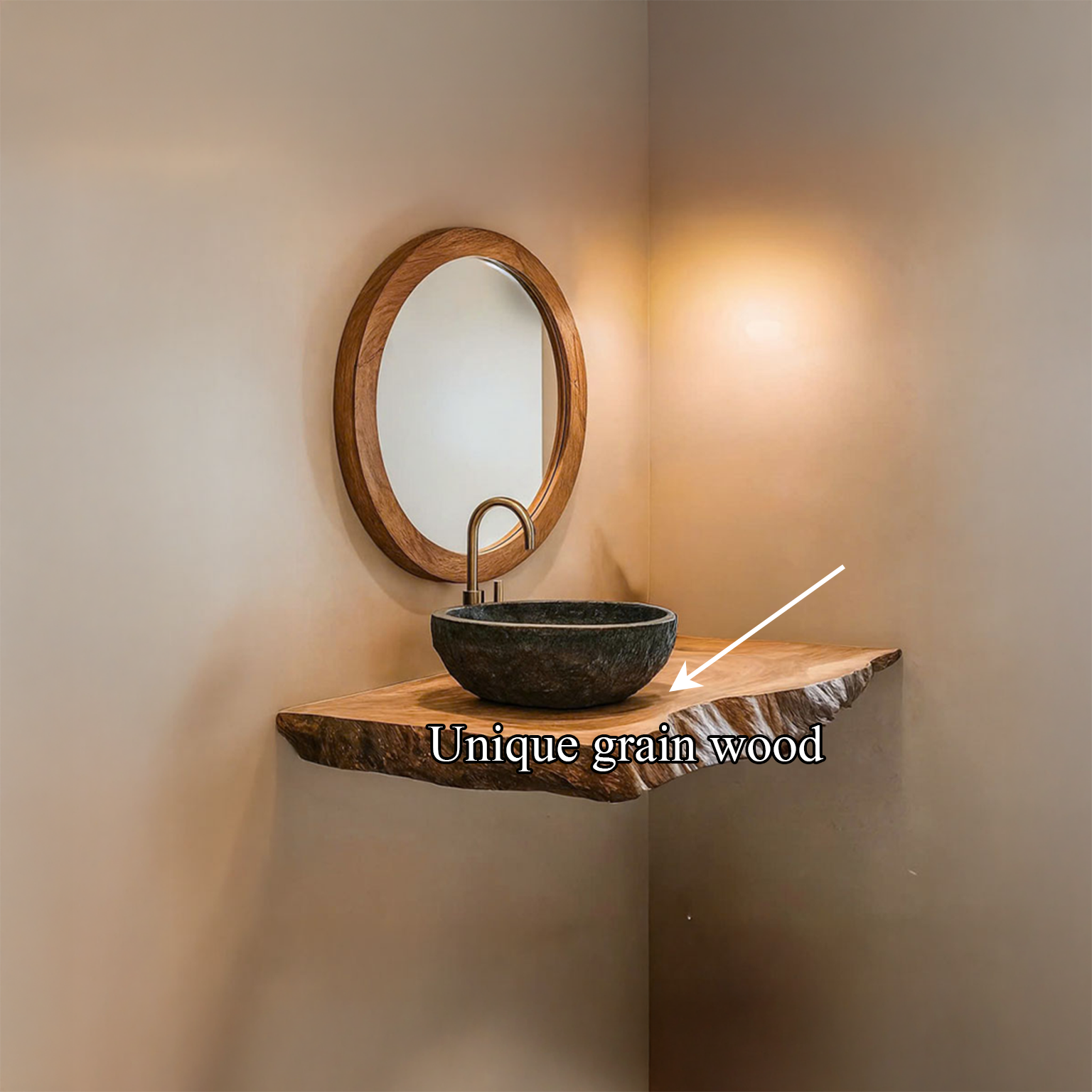 Enhance your washroom with the Midcentury Floating Shelf Vanity Washroom, a handcrafted piece that unites clean mid-century design with the warmth of natural wood. Each vanity is built from solid timber, showcasing distinctive grains and organic variations that make every piece unique. Its floating shelf style adds practical storage and timeless elegance, making it a refined focal point for any modern washroom.