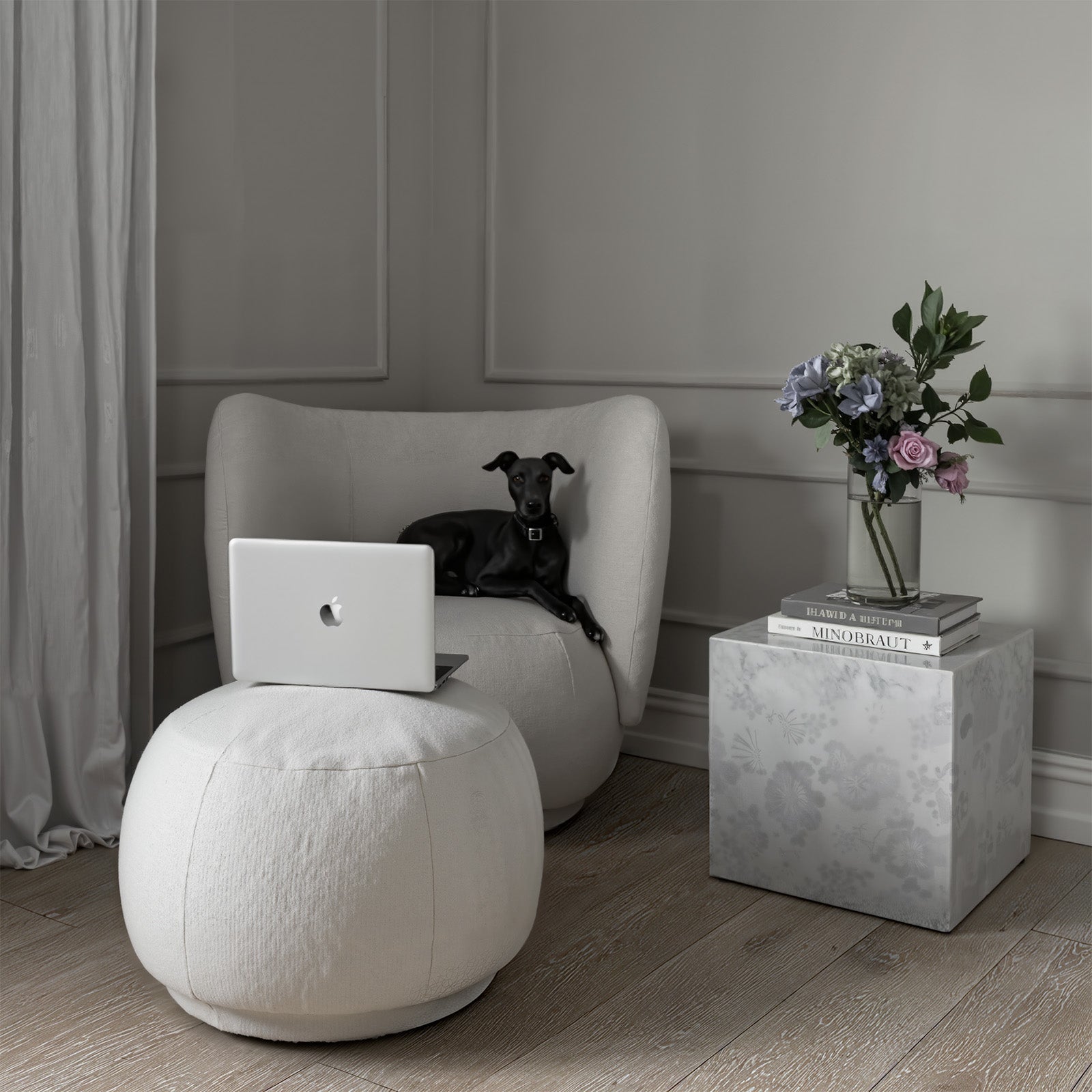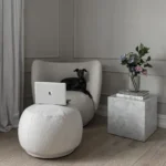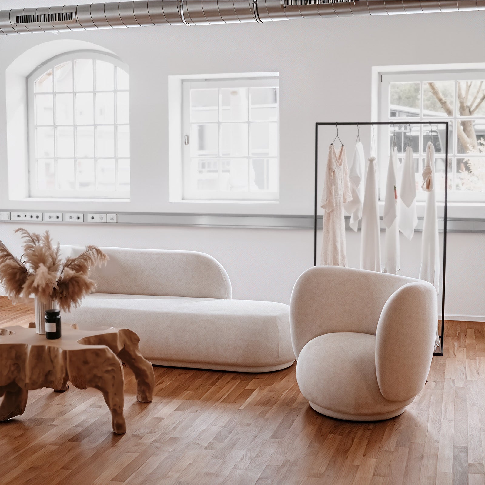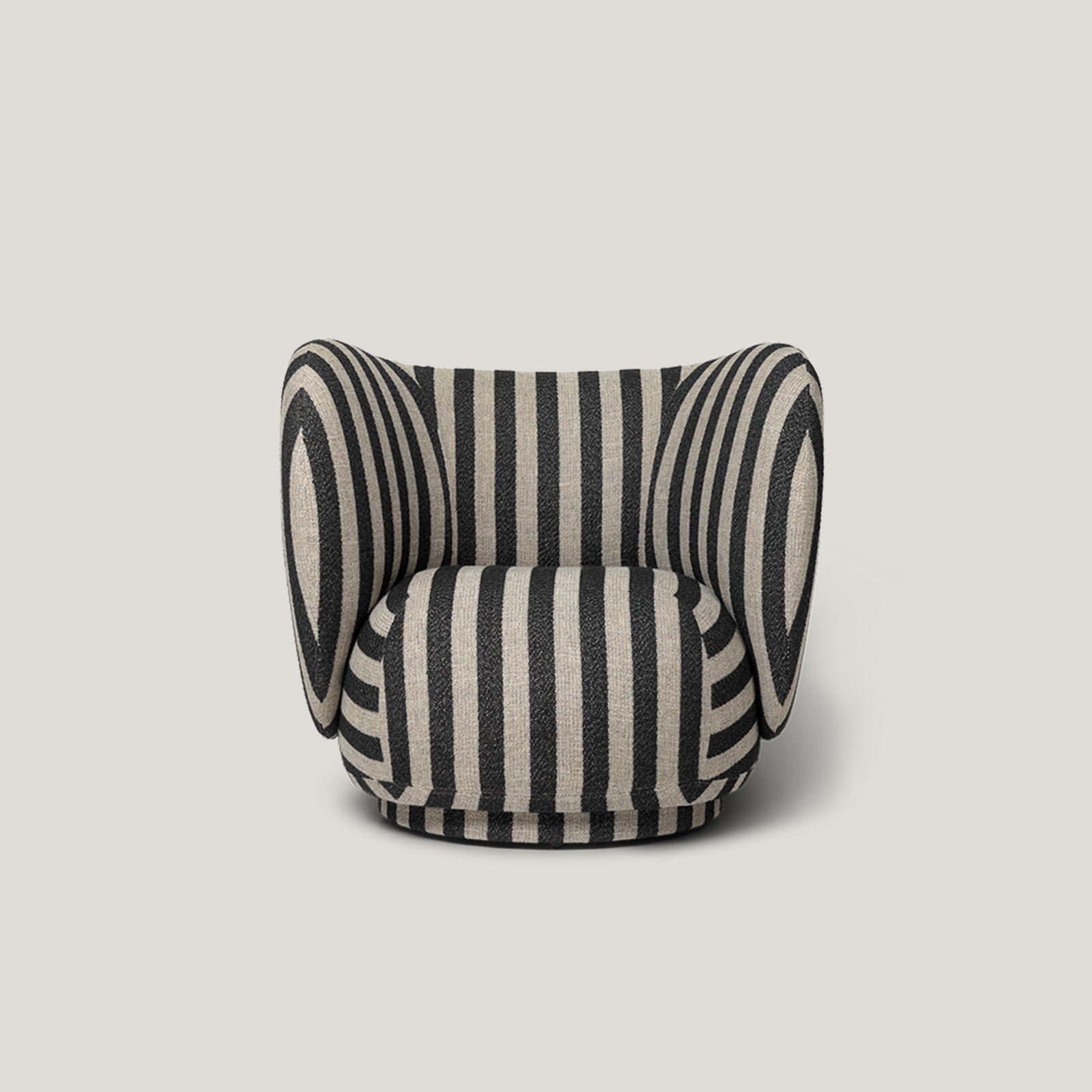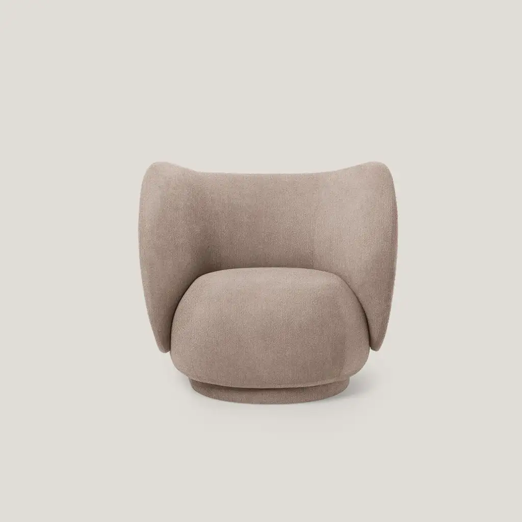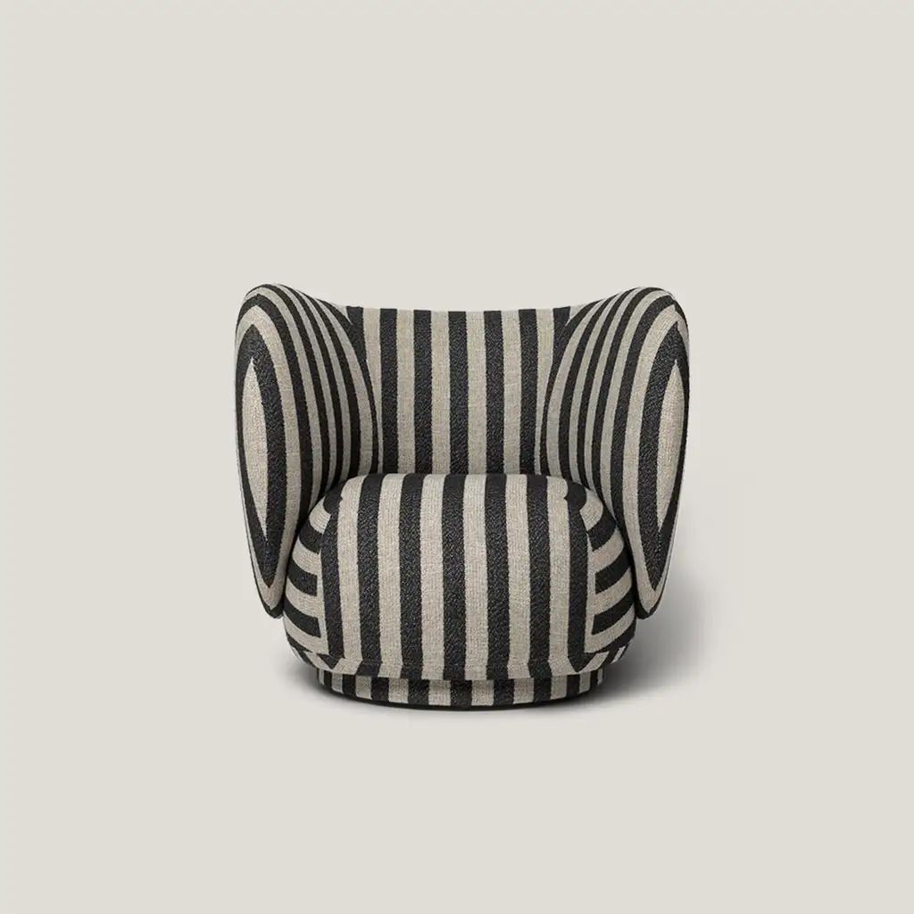 The armchair features upholstery in a classic yet comfortable fabric, woven from irregular yarn to create a rich, textured surface. The series’ curvaceous form brings a contemporary blend of comfort and sophistication to any space, inviting you into its nurturing embrace.