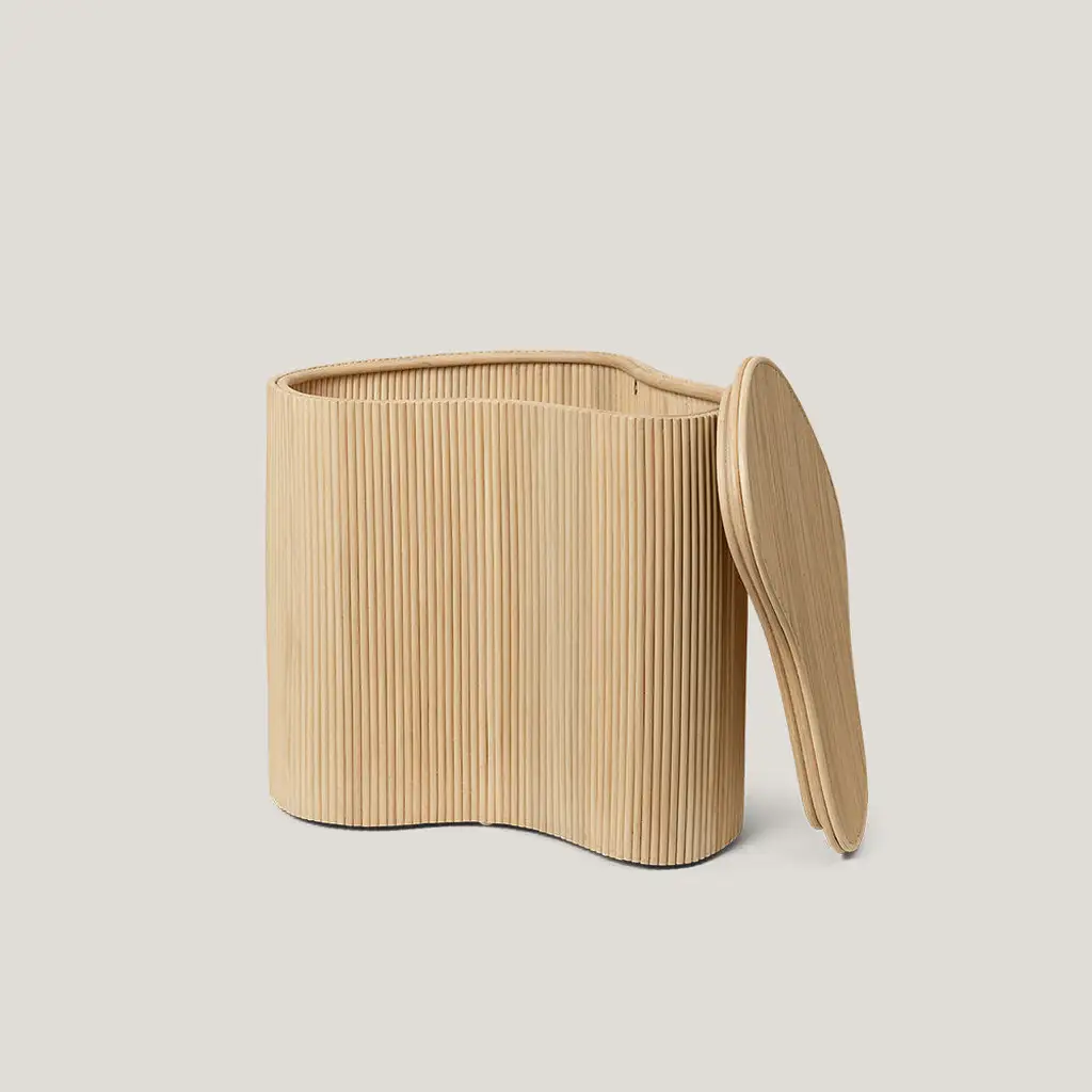 Featuring a unique, wavy design with a smooth, natural finish, this basket adds a touch of elegance to any room. The ribbed texture enhances its aesthetic appeal, making it not just a storage solution but also a decorative piece.
