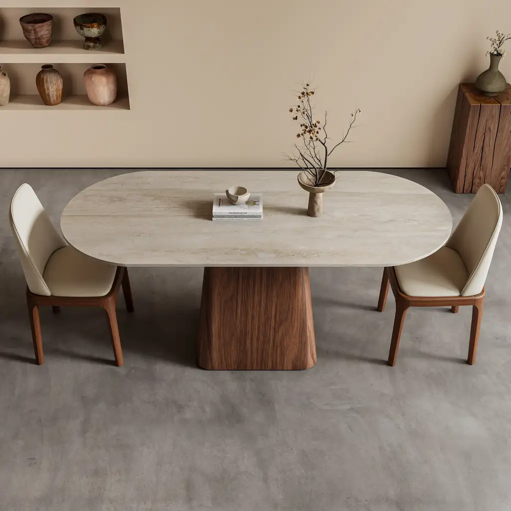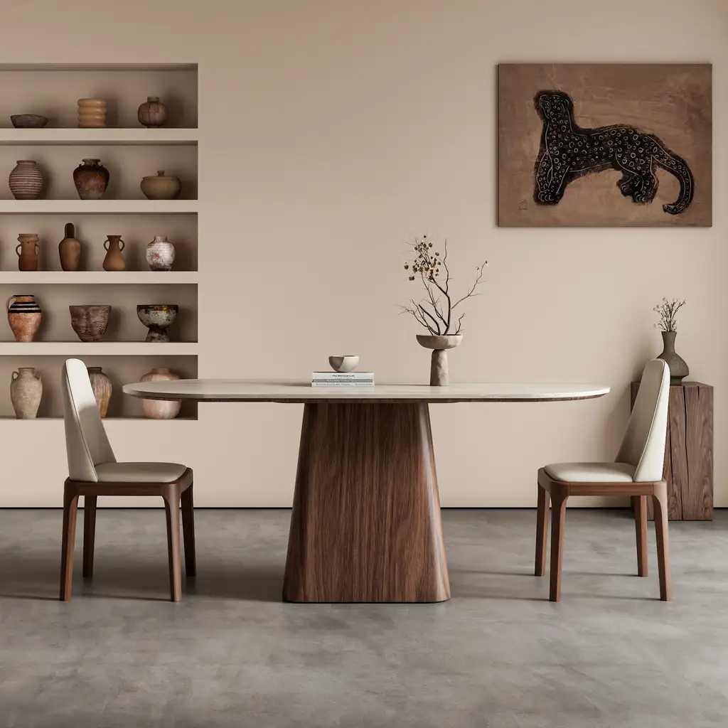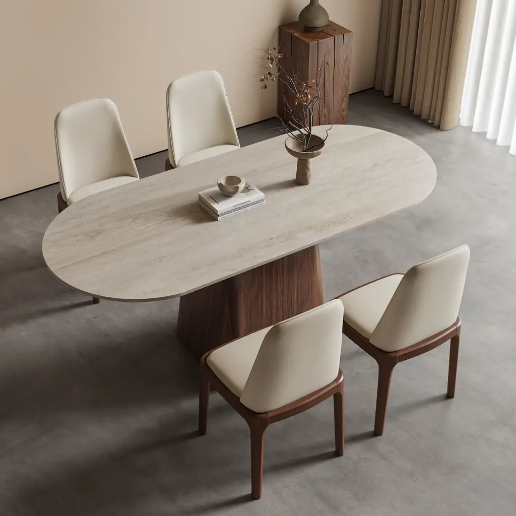 Modern pedestal table sintered stone dining table set to elevate your dining space.