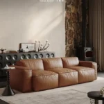 This 3-seater sofa, crafted from premium full-grain brown leather, epitomizes sophistication and timeless style, making it a perfect addition to any contemporary home.