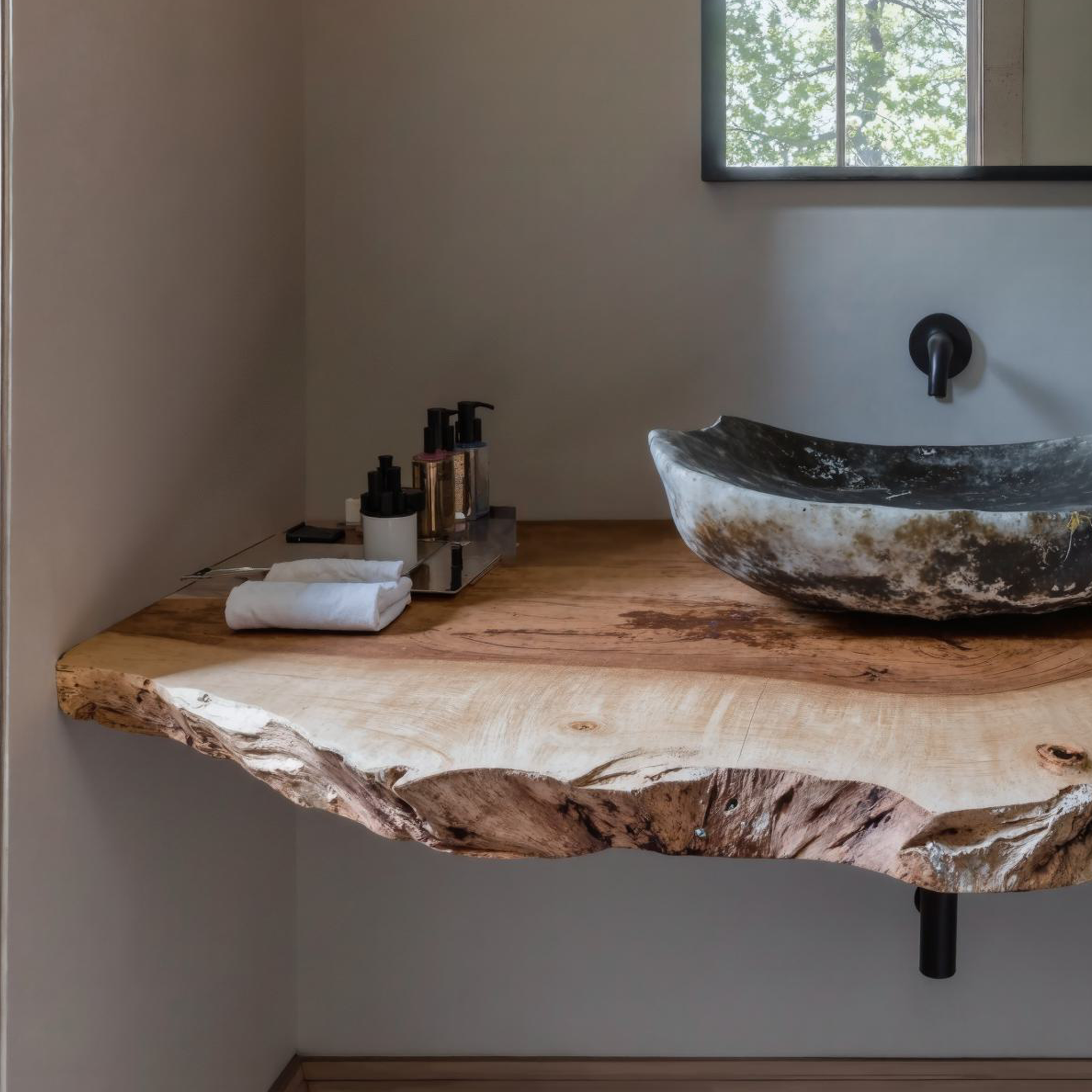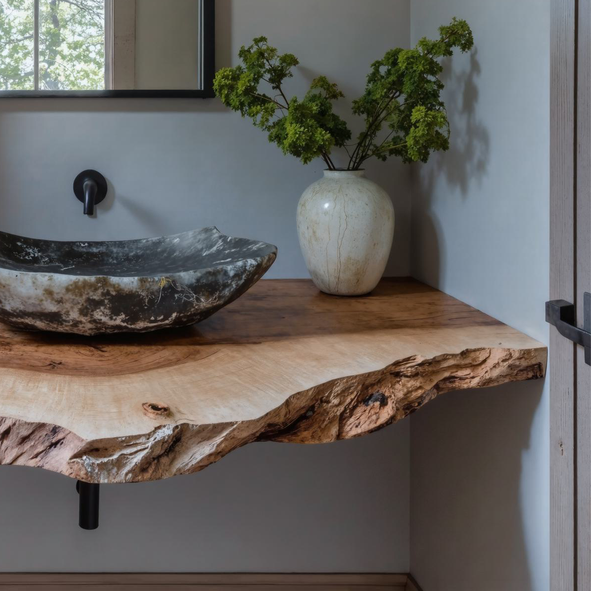 Elevate your bathroom with our Handmade Wooden Vanity, blending rustic charm with modern elegance for style and functionality.