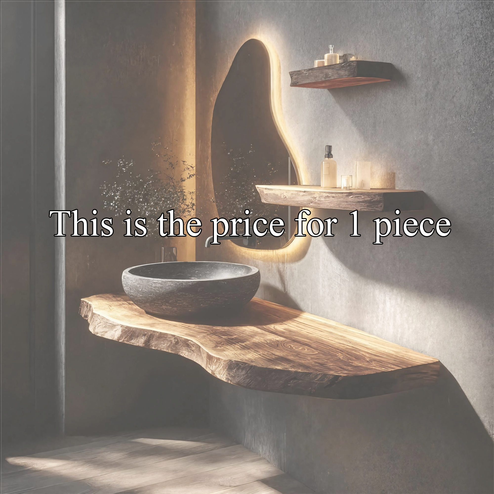 Designed to highlight the natural beauty of real materials, Natural Wood Bathroom Vanity Floating Shelf Countertop Stand is a handcrafted piece that brings warmth and organic texture into bathroom interiors. With its simple rustic form and solid wood construction, this shelf adds a balanced, functional accent suited to relaxed bathroom settings.