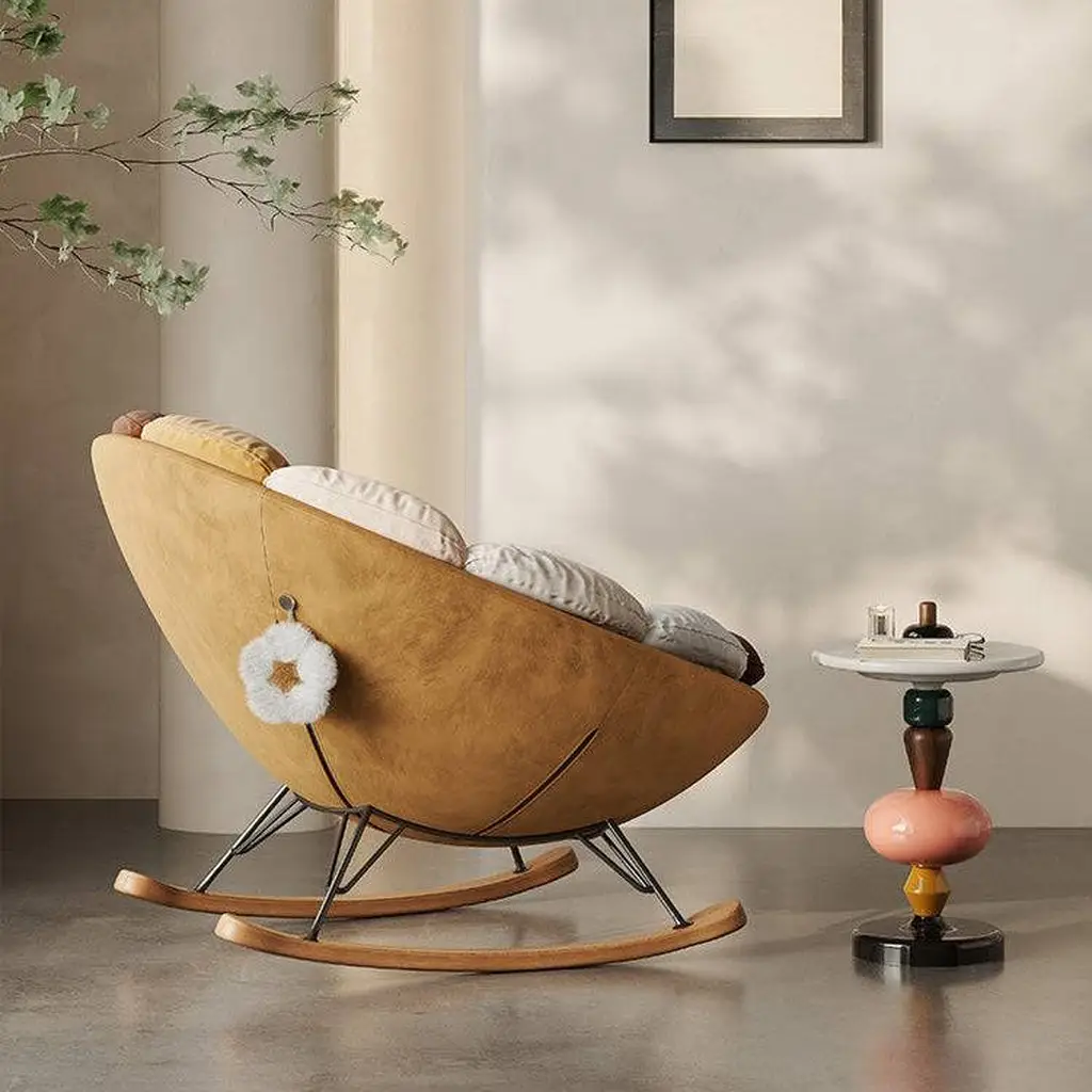 The bottom curved solid wood rocking feet gently release body tension, suitable for reading, daydreaming, taking a nap, or spending quiet time with children.